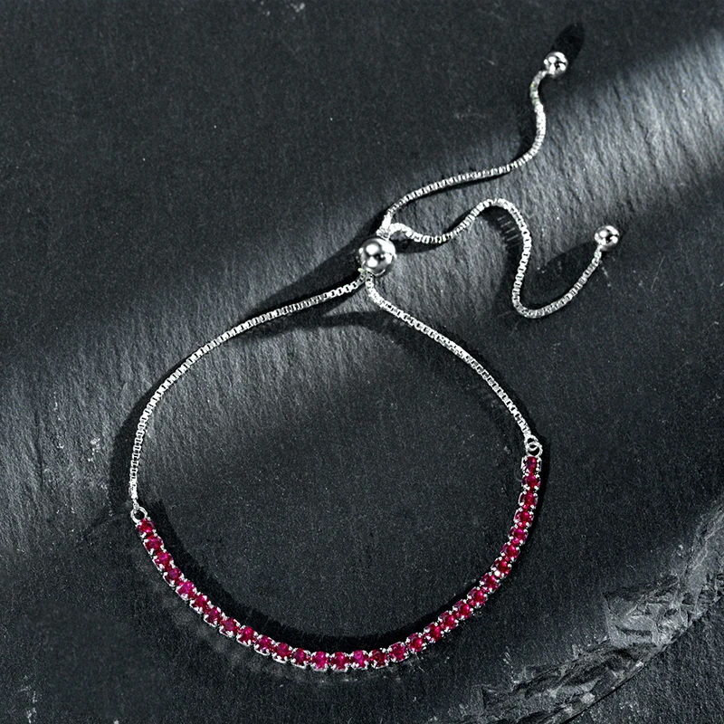 Женский браслет из серебра 100% пробы, с рубиновым сапфиром 925 мм