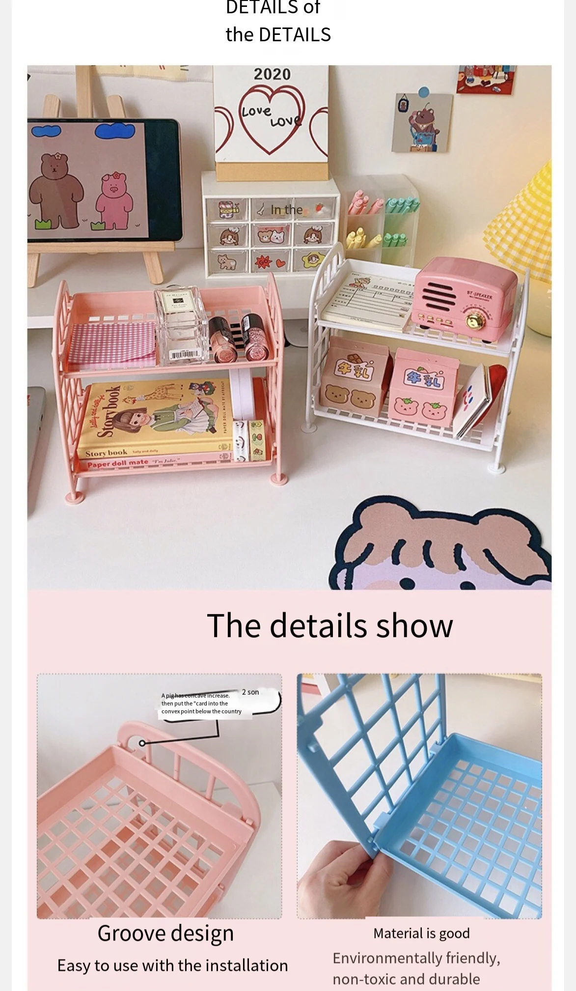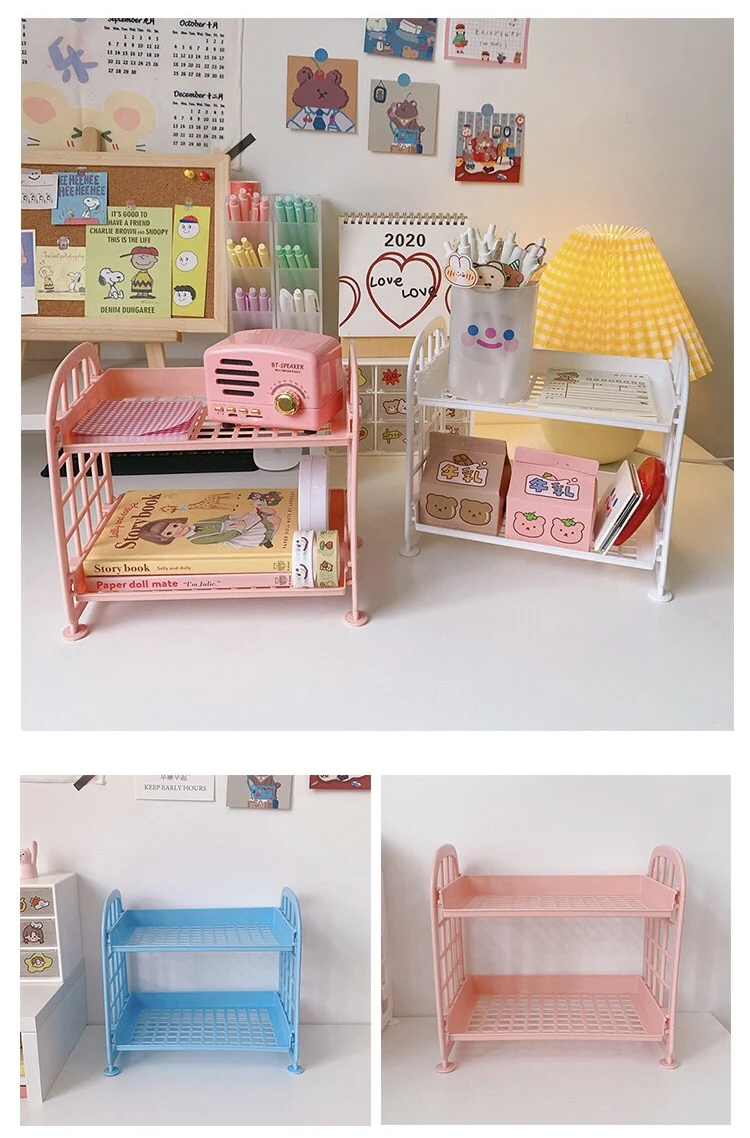 INS офисная полка для хранения Двухярусная подставка розовая Милая ...