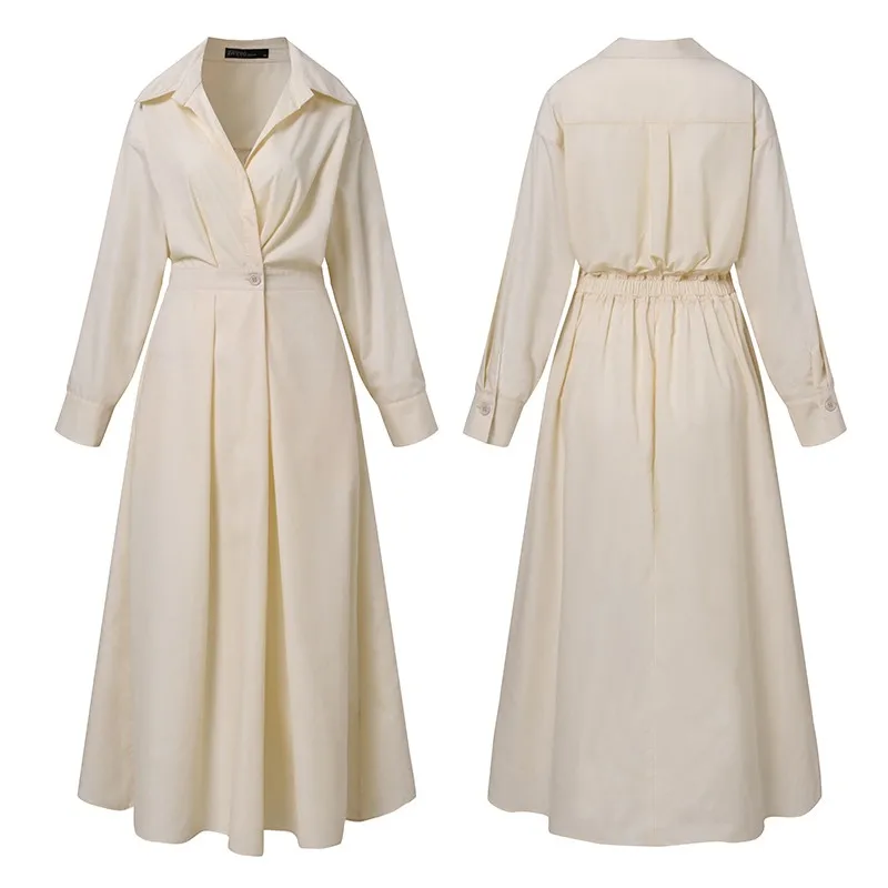 Платье ZANZEA женское с длинным рукавом, модный элегантный длинный сарафан с отложным воротником, Однотонная рубашка в стиле оверсайз, осень