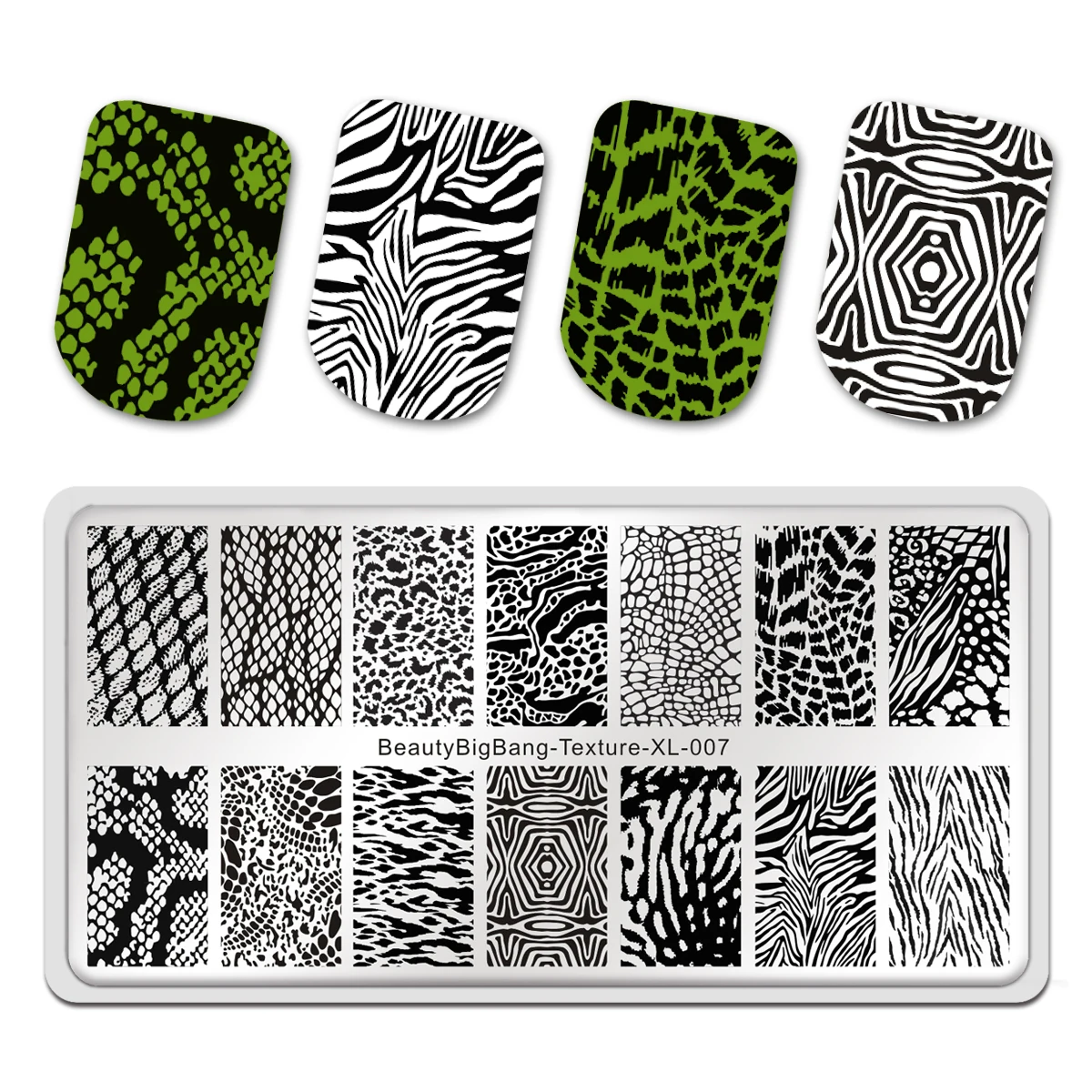 Beautybigbang штамповочная пластина для ногтей DIY текстура 007 животное змеиная кожа цветок изображение ногтей маникюрный Шаблон трафарет инструмент