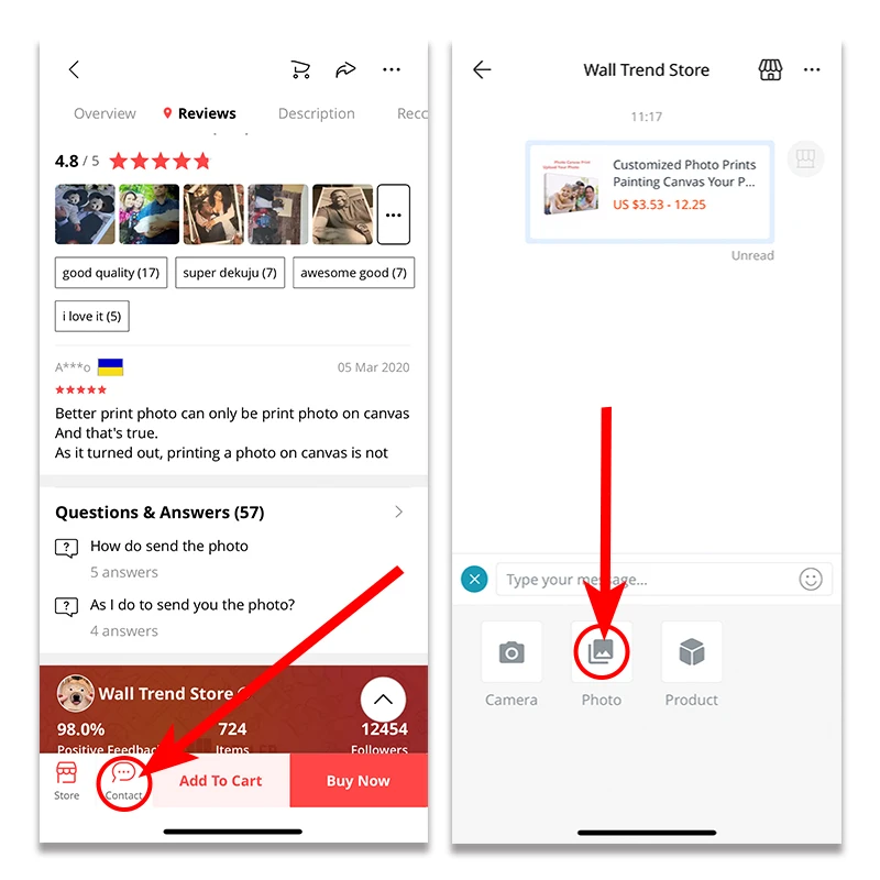 Покупатель отправляет Вам письмо, на которое вы должны отправить фотографию