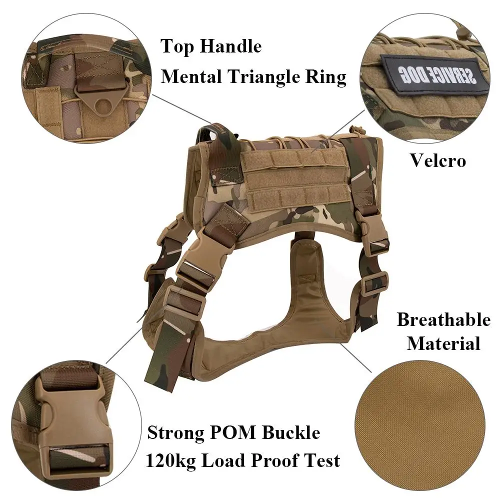 Тактическая поводок и шлейка для собак, прочная металлическая пряжка для крупных собак, немецкая овчарка, тренировочные рабочие товары для питомцев