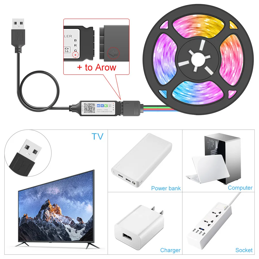 Светодиодсветильник RGB лента, гибкая неоновая лента для подсветки телевизора, Bluetooth, 5 В