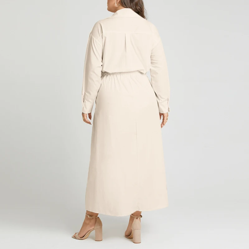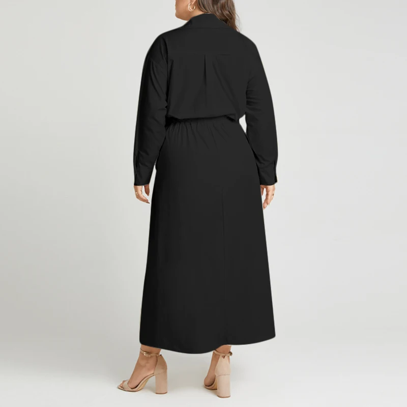 Женское осеннее платье-рубашка с отворотом, длинным рукавом и длинным рукавом, Vestidos Robe Femme