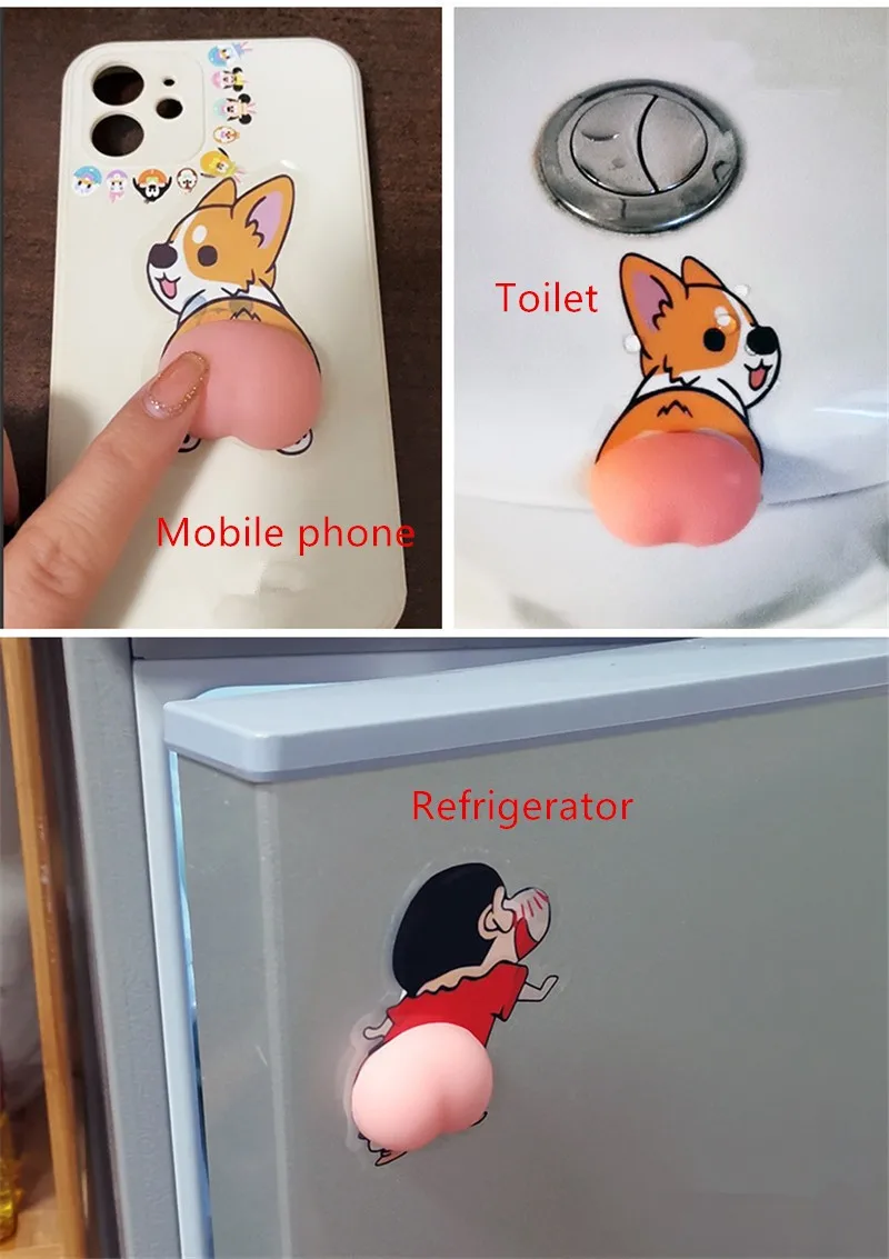 Милые игрушки-антистресс в стиле поп, креативные Мультяшные наклейки на задницу для холодильника, автомобиля, корги