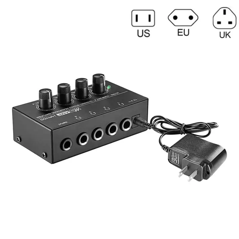 Ультракомпактный 4-канальный мини-усилитель для наушников с разъемом для ЕССШАВеликобритании, с адаптером питания, портативный усилитель для наушников