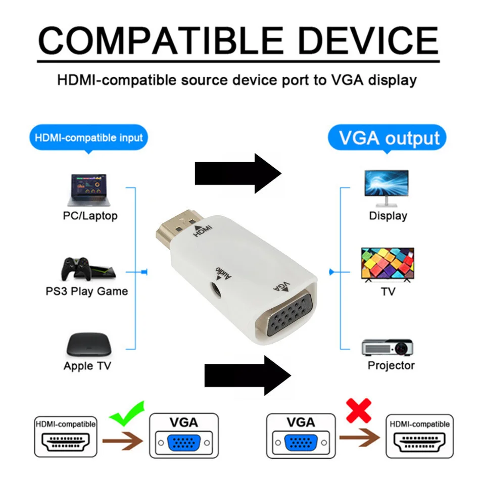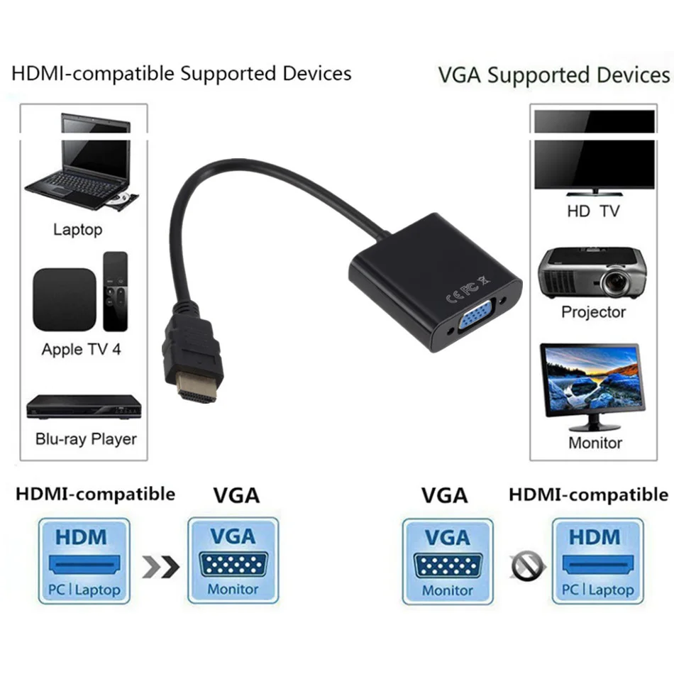 Женский HDMI-совместимый с VGA адаптер соединяет hdmi-совместимое устройство с монитором или проектором с портом VGA с помощью дополнительного HDMI-совместимого кабеля. Обратите внимание: не двунаправленный-этот видео конвертер преобразует только HDMI-совместимый сигнал в VGA.