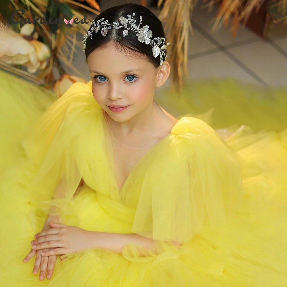 Розовые Детские Платья с цветочным принтом для девочек, платья из тюля для первого причастия, платья с буффами на рукавах и бантом для девочек на свадьбу, платья для невесты
