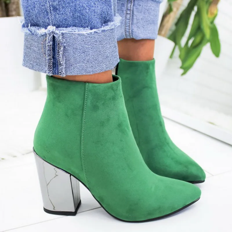 Женские ботинки из флока на платформе и высоком каблуке, осенне-зимние уличные туфли-лодочки, Теплые ботильоны на молнии, элегантная женская обувь