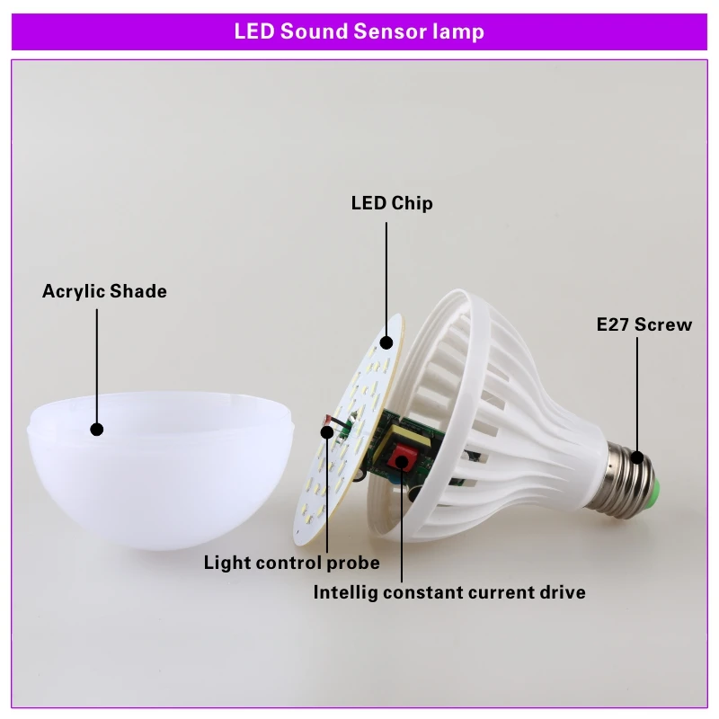 2 шт., светодиодная лампа с датчиком звука, 3-12 Вт, 220-240 в перем. Тока