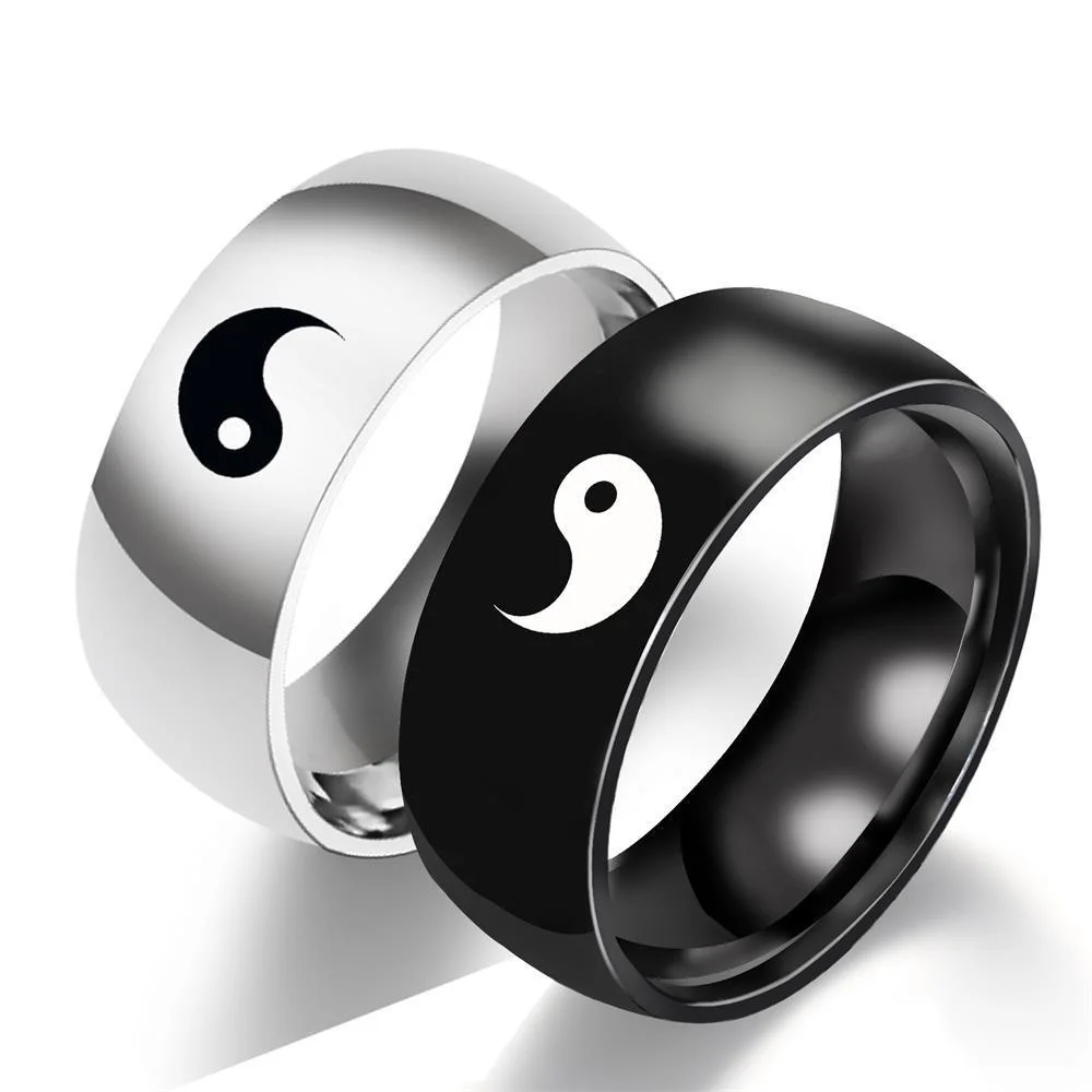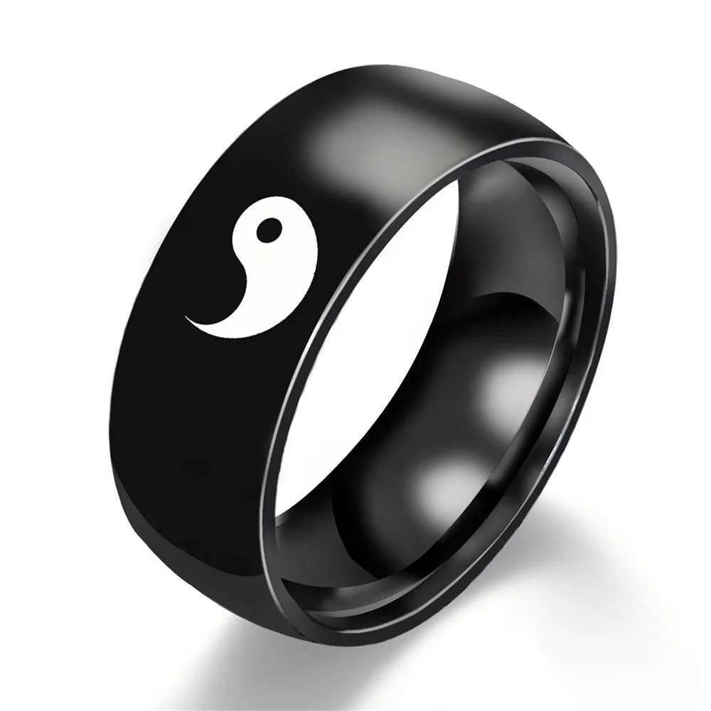 Парные кольца Tai Chi из титановой стали, черно-белое кольцо из нер...