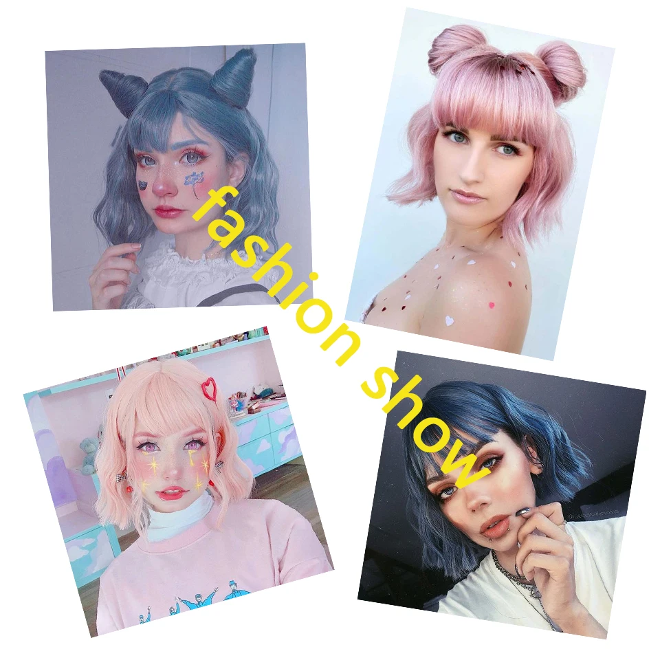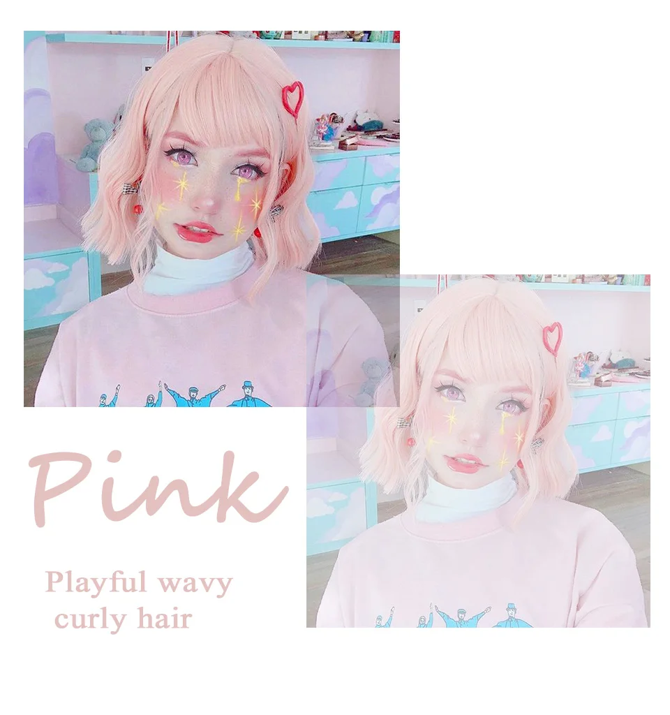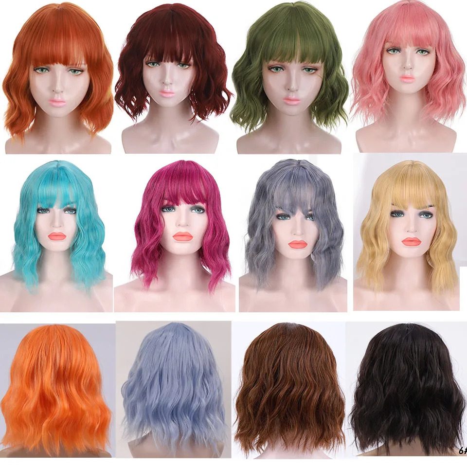 HOUYAN короткие волнистые вьющиеся волосы боб челка парик синтетический женский розовый градиент синий парик Вечерние