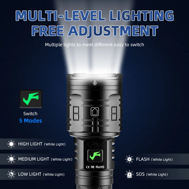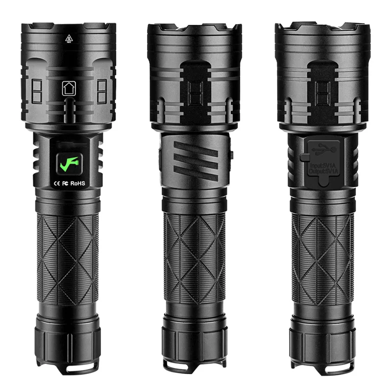 Новая быстрая зарядка USB Type-c, увеличивает функцию вывода, может использоваться в качестве внешнего аккумулятора для зарядки телефона, увеличивает объектив, дальность освещения шире, переключается отображение мощности, обзор состояния мощности в реальном времени, противоскользящие линии на корпусе, головная ударная головка1,16 основных лампочек, высокая яркость до 5800 люмен, срок службы 100000 часов;2. Выпуклая линза: выпуклая линза «Орлиный глаз» большая выпуклая линза, хорошая светопропускающая способность, нелегко повредить, прочная алюминиевая головка для защиты линзы от износа3. Телескопический зум: растяните голову влево и вправо, чтобы увеличить, режим астигматизма-концентрация, удобен в использовании в различных ситуациях;4. Средний переключатель: высококачественный материал из натурального каучука, нескользящая обработка поверхности, сенсорный выключатель света для переключения режима освещения;5. Контакт Аккумулятора: конструкция контакта аккумулятора имеет хорошую электропроводность и эффективно предотвращает плохой контакт.