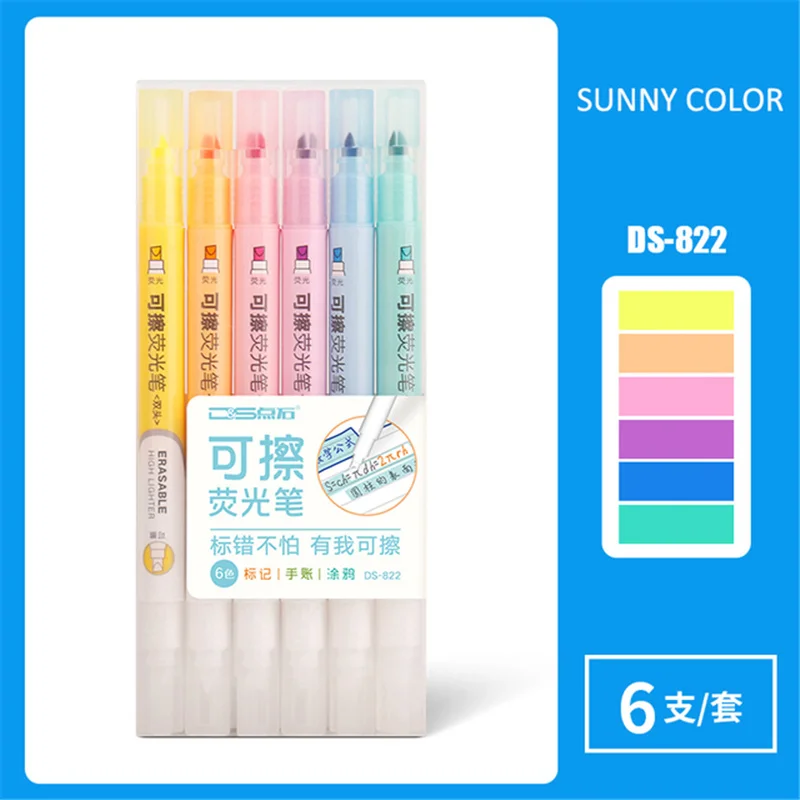 Маркеры клеевые стираемые, двухсторонние флуоресцентные маркеры для рисования и маркировки, школьные и офисные канцтовары, 6 цветов
