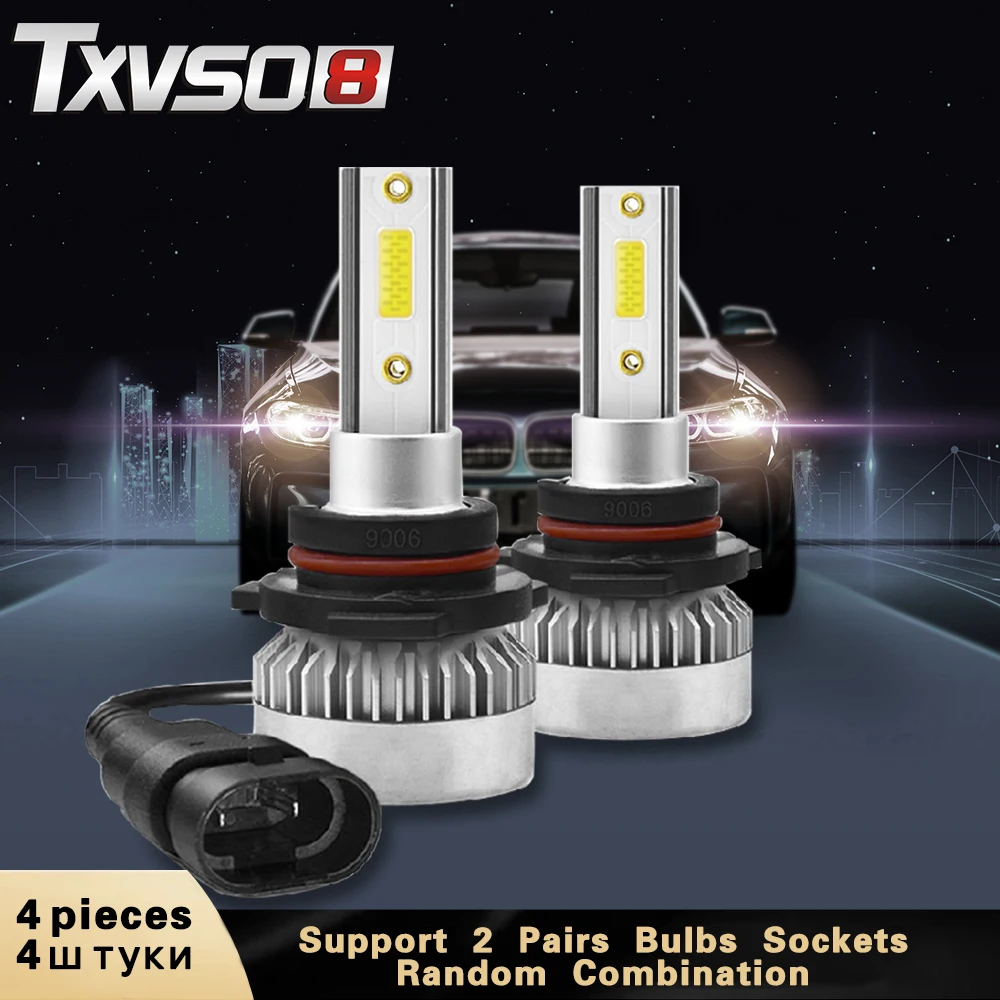 Светодиодные лампы TXVSO8 HB4, универсальные автомобильные фары 55 Вт 12 В 9006HB4 9005HB3 H1 6000K лм, светодиодные лампы для авто, 4 шт.