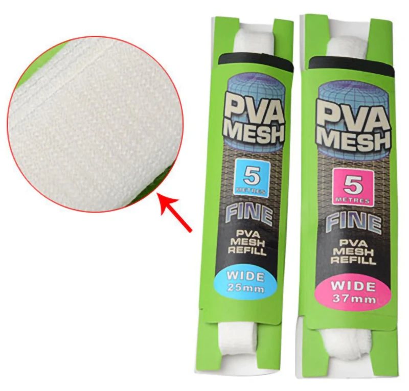 Сырье-ПВА, которая плавится и разлагается сразу же после попадания в воду. Он может быть загружен приманкой и переносится на крючок. Когда его бросят в воду, мешок расплавится. Крючок спрятан в куче приманки. Рыба приходит, чтобы съесть приманку и вдыхать крючок