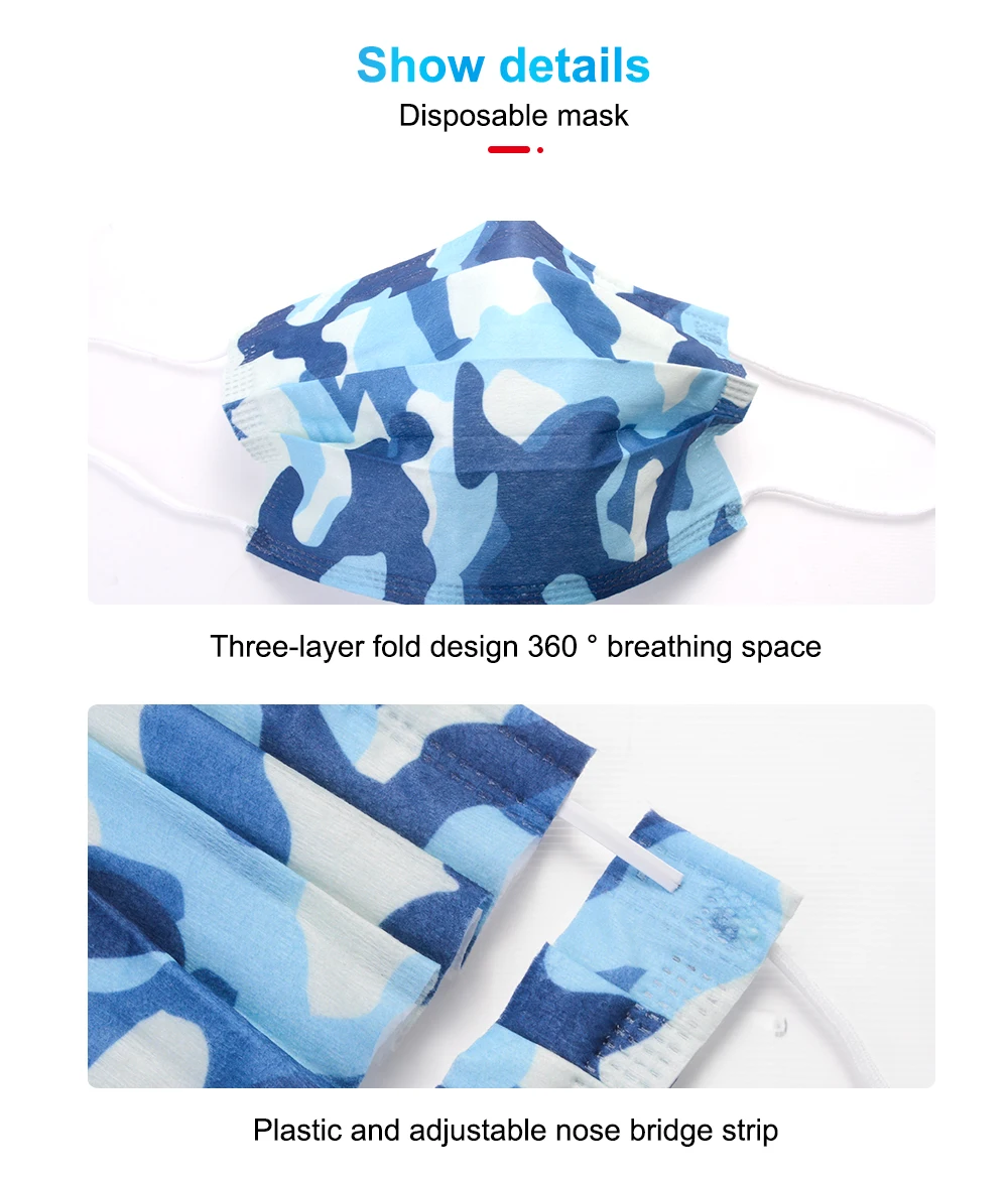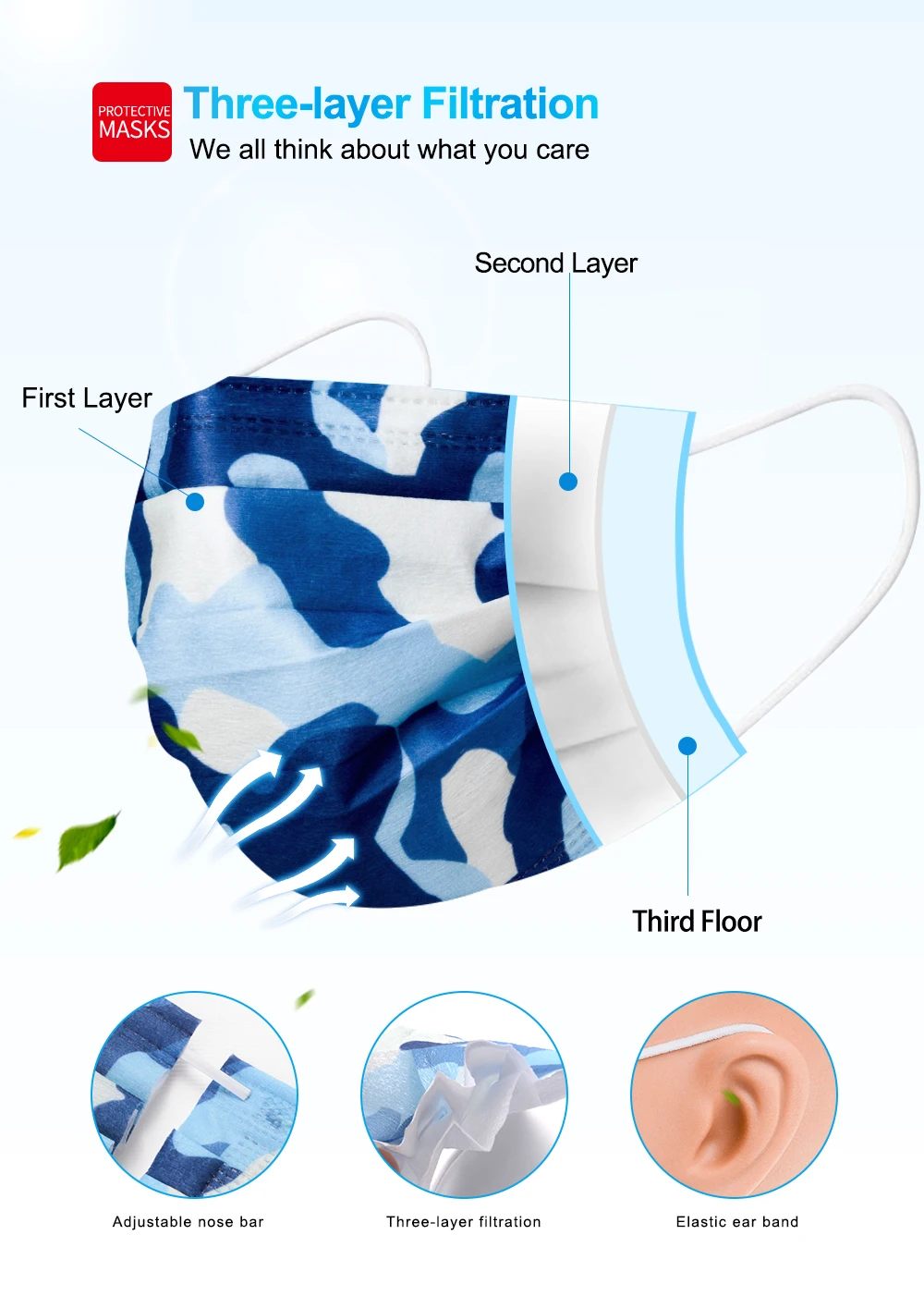 Маска для лица одноразовая камуфляжная с фильтром, 1050100 шт.
