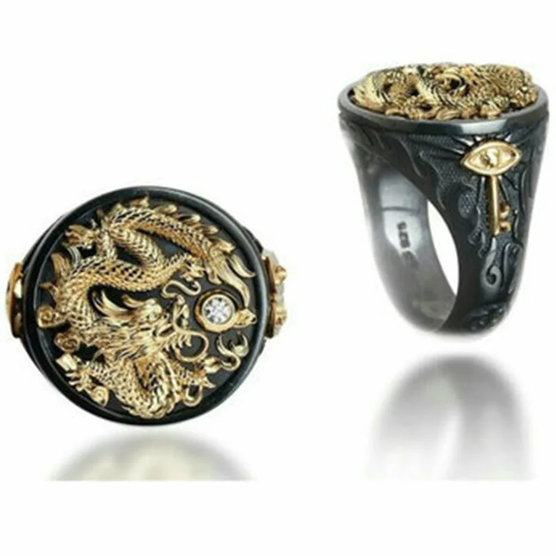 Мужское Винтажное кольцо с драконом, черное кольцо в виде пистолета, мужское кольцо, модное готическое кольцо в стиле панк, Ювелирное Украшение для вечеринки, в китайском стиле