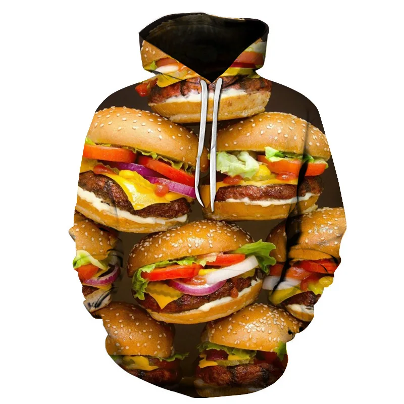 Толстовка с капюшоном с 3D-принтом гамбургеров для мужчин и женщин, свободная толстовка в стиле Харадзюку, модная повседневная толстовка с капюшоном на осень и зиму