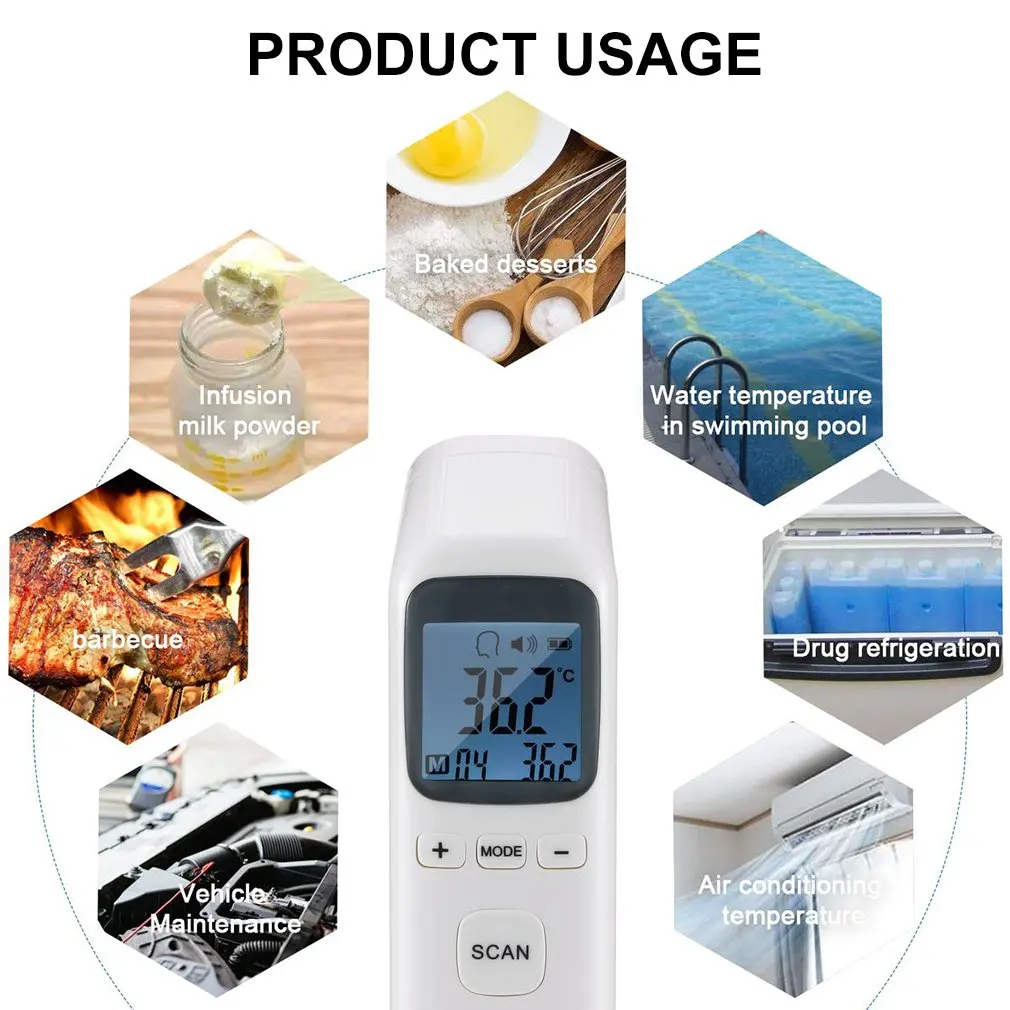 5. Измерение температуры Dualmode: может измерять температуру человеческого тела/температуру материала/температуру воды/температуру окружающей среды.