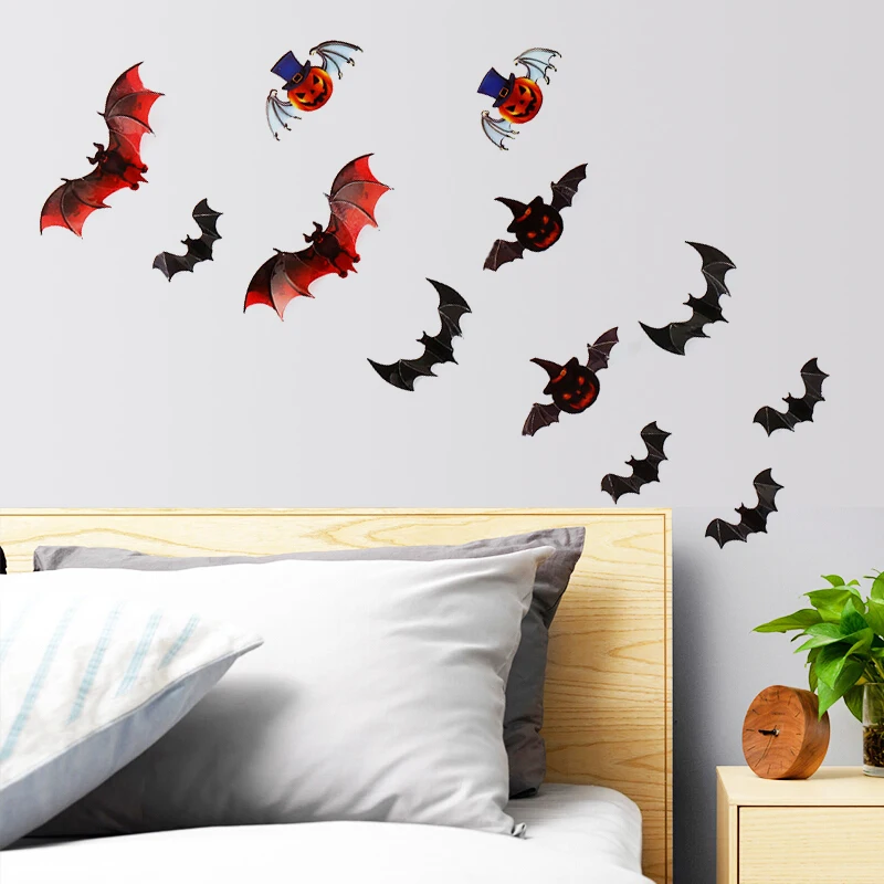 12 шт.компл. Хэллоуин Наклейка на стену 3D летучая мышь Наклейка на стену Домашняя вечеринка художественная наклейка Ужасы летучие мыши обои Хэллоуин канун Декор