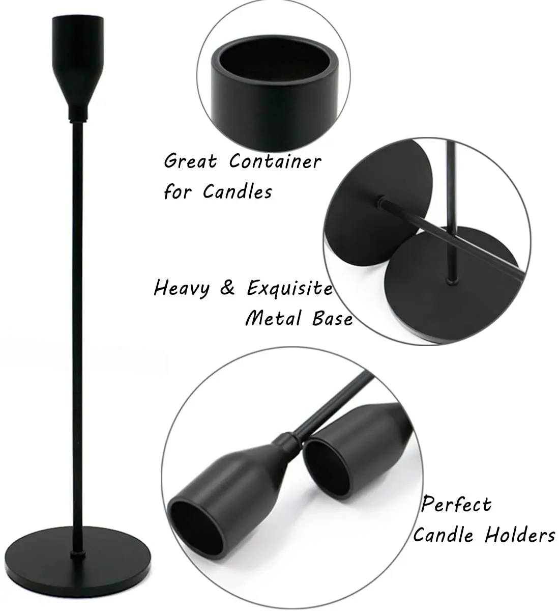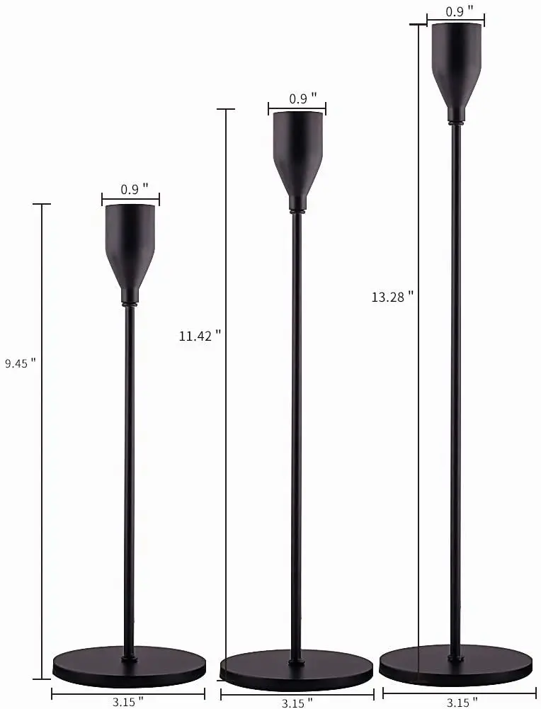 Матовые черные подсвечники набор из 3 для конусных свечей, декоративный подсвечник для свадьбы, ужина, вечерние, подходит для 3/4 дюймовых толстых свечей и светодиодных свечей (металлическая подставка для свечей)