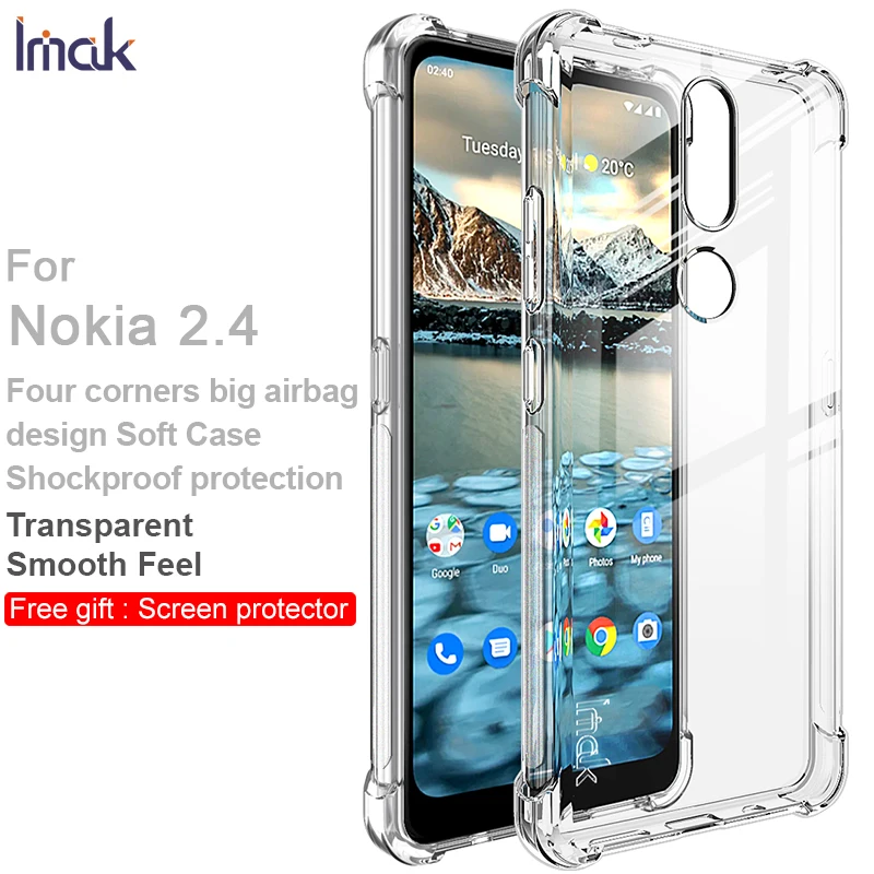 Мягкий силиконовый ударопрочный чехол Imak с подушкой безопасности для Nokia 2,4, чехол из ТПУ, серый чехол + защита экрана