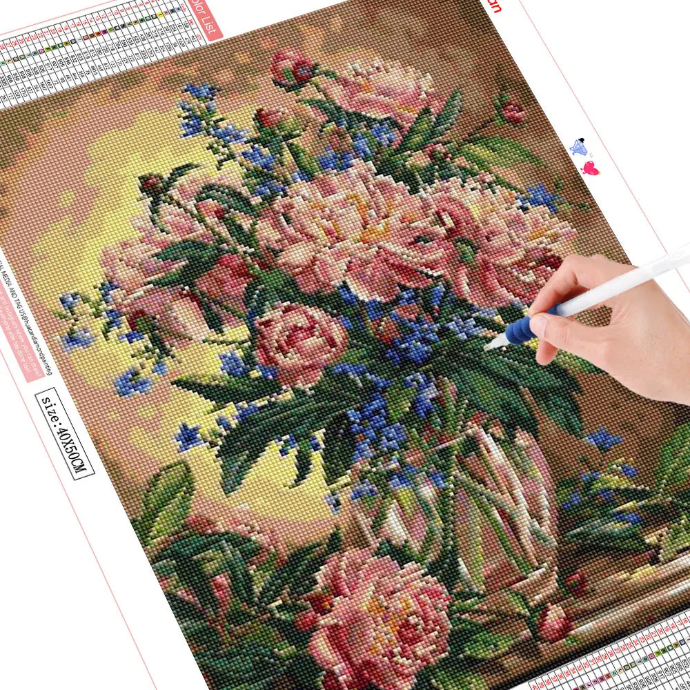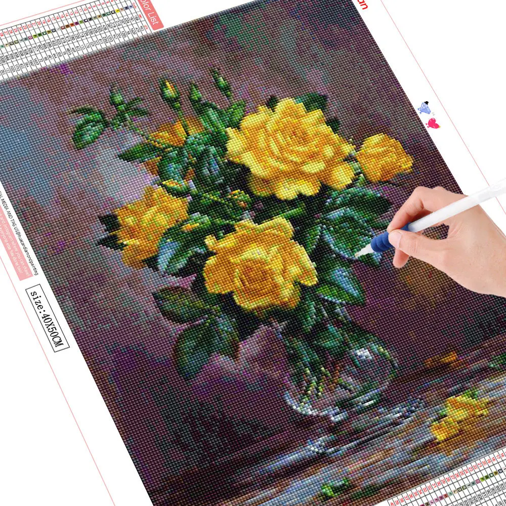 Алмазная живопись HUACAN 5d, цветок, искусственная вышивка, вышивка крестиком, ваза