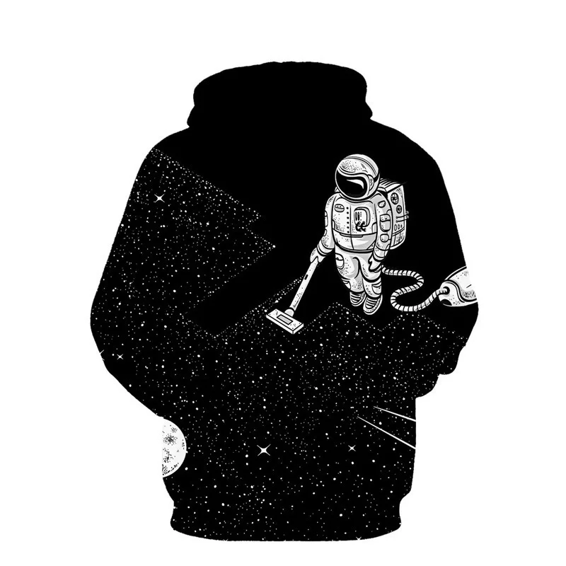 Толстовка МужскаяЖенская с длинным рукавом, свитшот с 3D принтом астронавта и космоса, черный спортивный костюм с капюшоном, пуловер, топы, Забавный дизайн