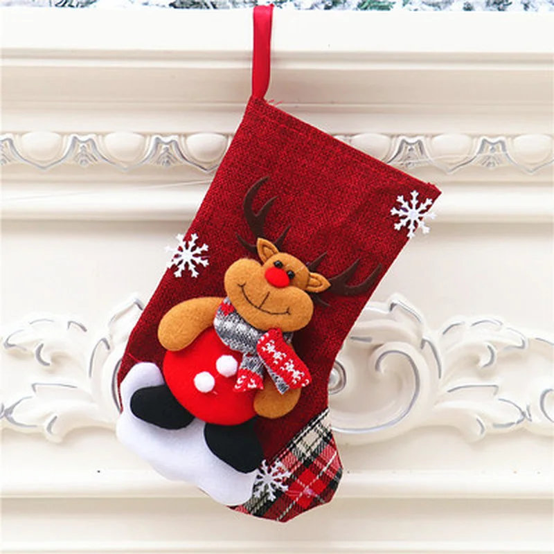 Новинка 2021, лидер продаж, большие чулки, подарочные носки из ткани с Санта-Клаусом, Рождественская прекрасная сумка для детей, камин, елка, Рождественское украшение