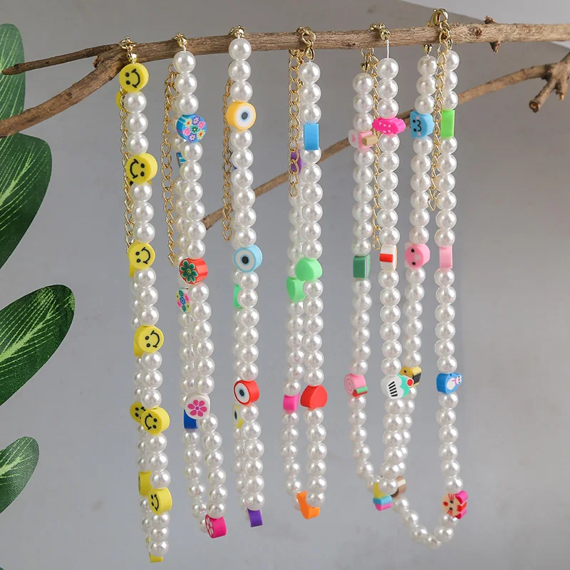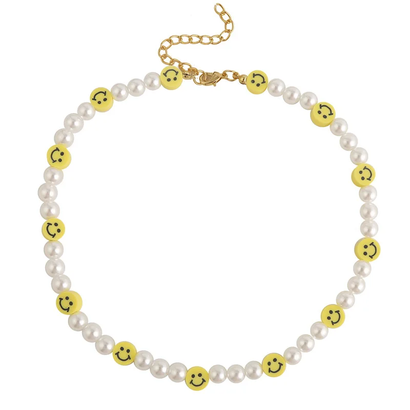 Модные ожерелья с имитацией жемчуга, ожерелья с изображением смайли...
