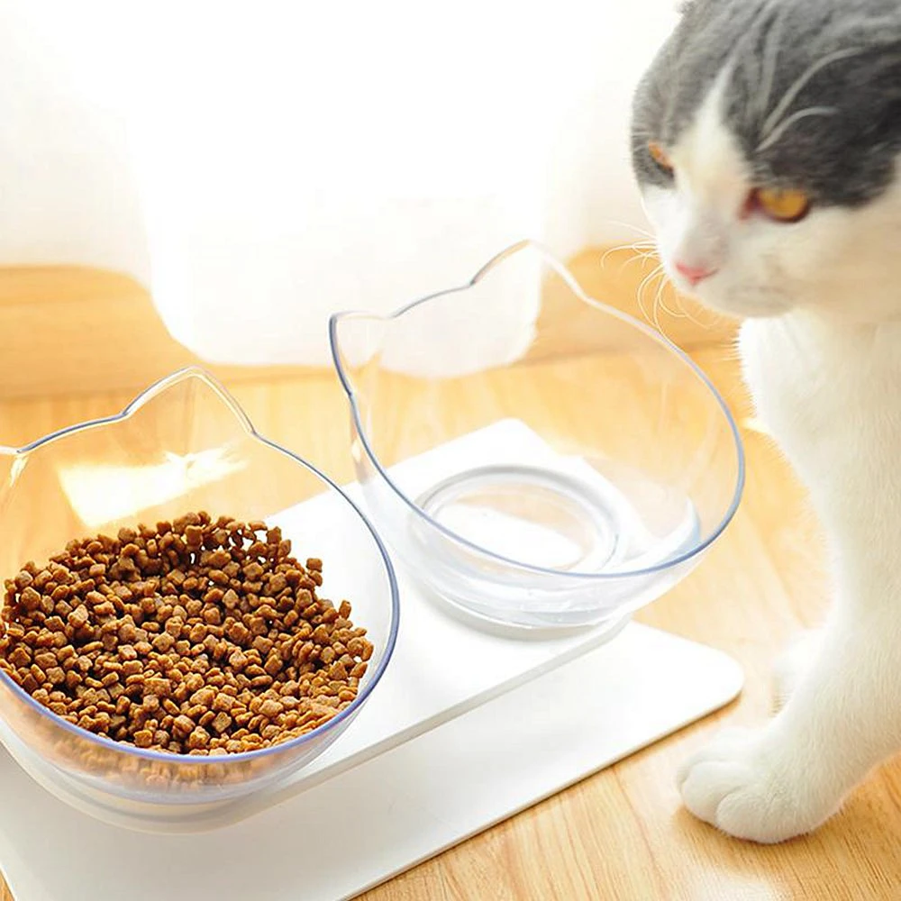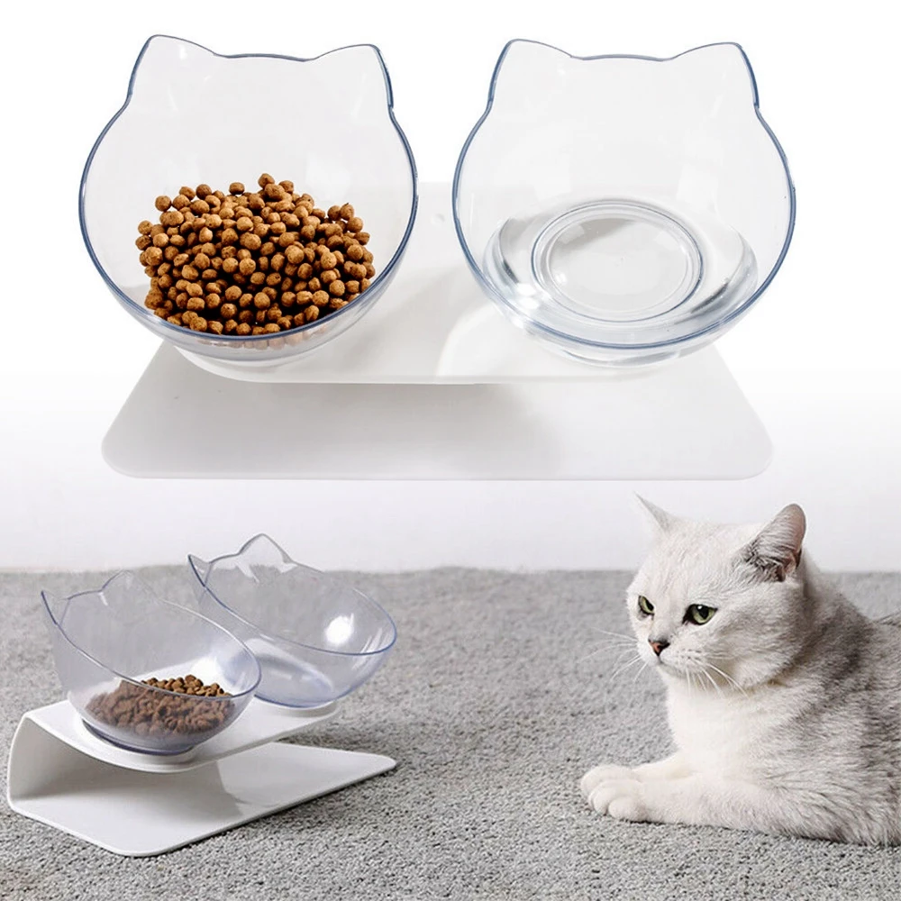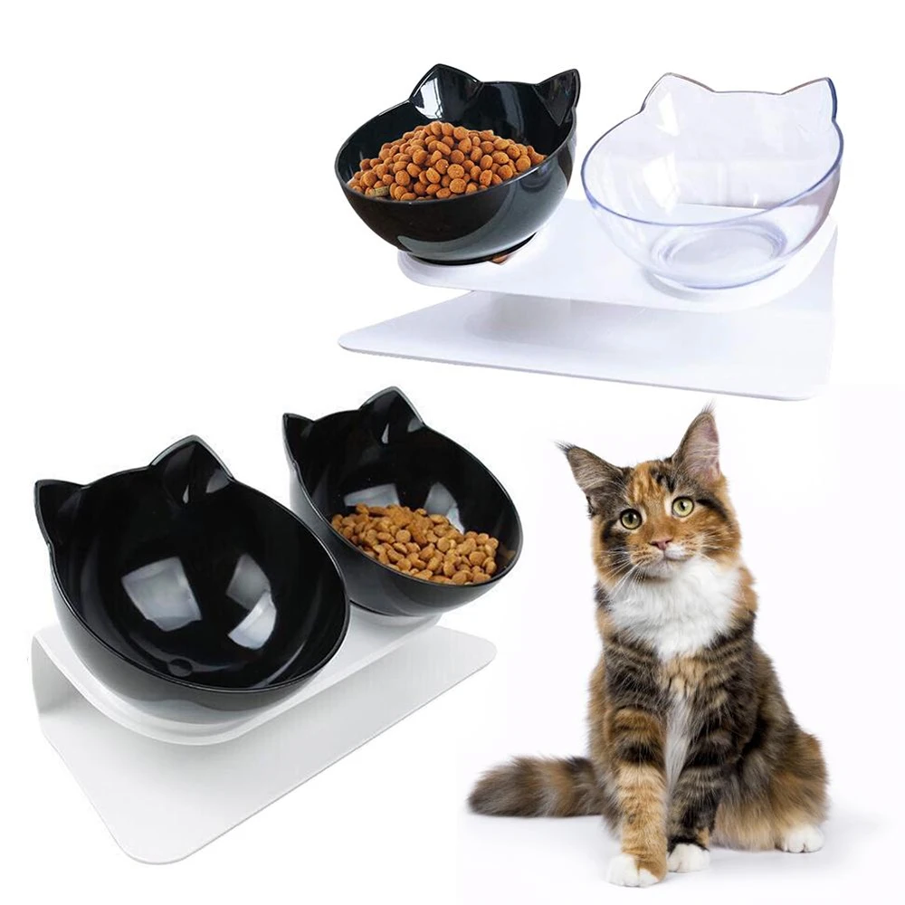 Двойная миска для кошек и собак с наклоном на 15 , поднимающаяся миска для кошек с нескользящим кронштейном, миска для кормления домашних животных для кошек и маленьких собак
