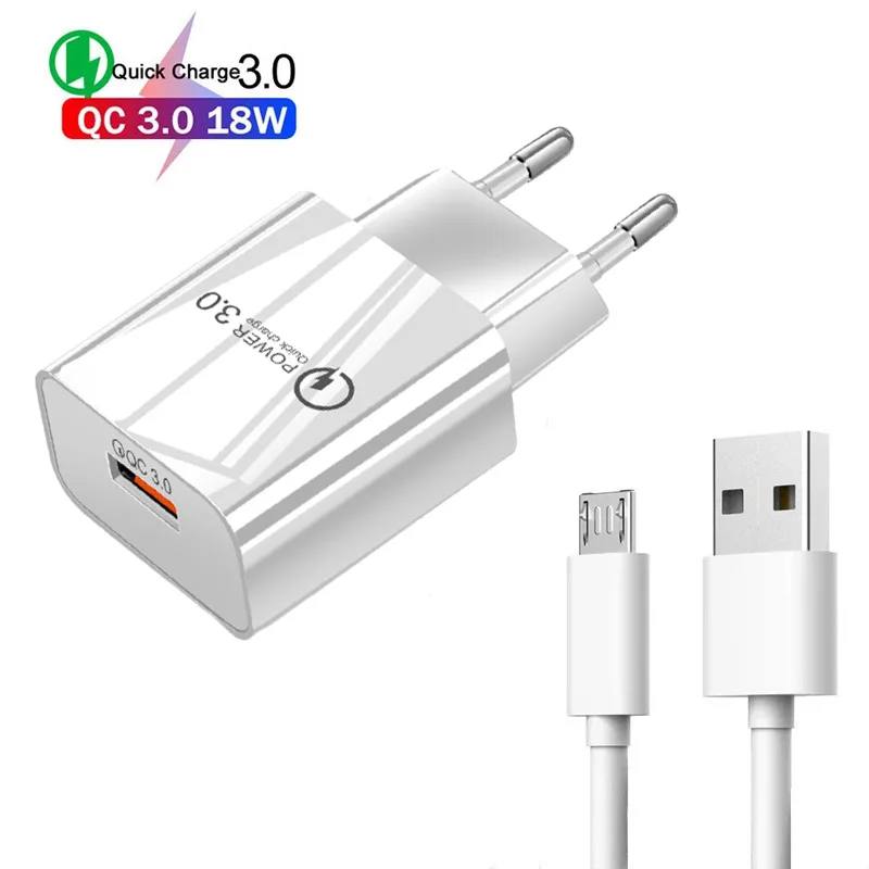 Быстрое зарядное устройство USB + Кабель Micro USB для Huawei P Smart Y5 Y6 Y7 Prime Y9 2018 2019 Honor 8A 8S 9A 9S Quick Charge3.0 EU Wall Plug
