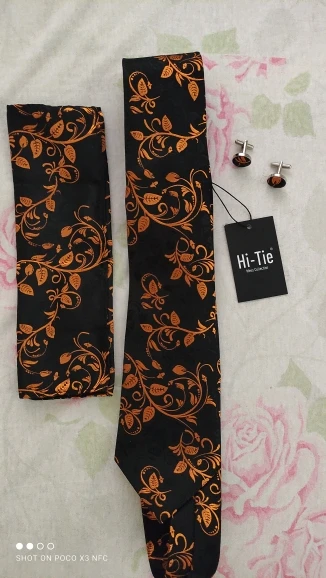 Hi-Tie мужской галстук набор оранжевый черный Пейсли шелковые сваде...