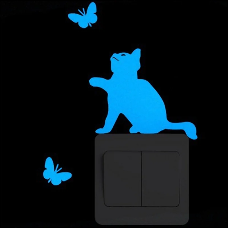 Сказочная наклейка на выключатель света в виде кошки, светящиеся наклейки на стену, мультяшная наклейка, наклейка для детской комнаты, украшение для дома