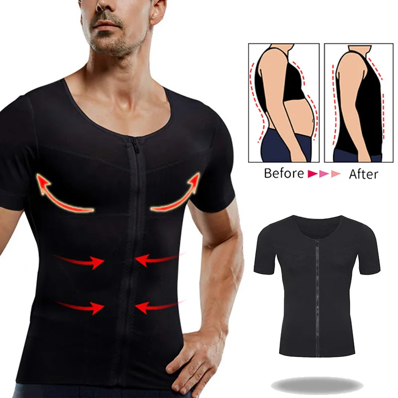 Компрессионная футболка для мужчин, формирователь тела, тренажер для талии, Корректор осанки, Abdo, Мужская футболка для похудения, корректирующие Топы