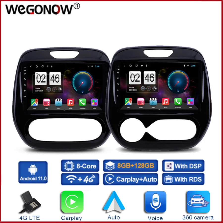 Автомобильный DVD-плеер, 360 дюйма, камера CanBus 8 ГБ + 128 ГБ, Android 11,0, GPS, Wi-Fi, Bluetooth, RDS, радио для Renault Captur, CLIO 2011, 2014, 2015-2018