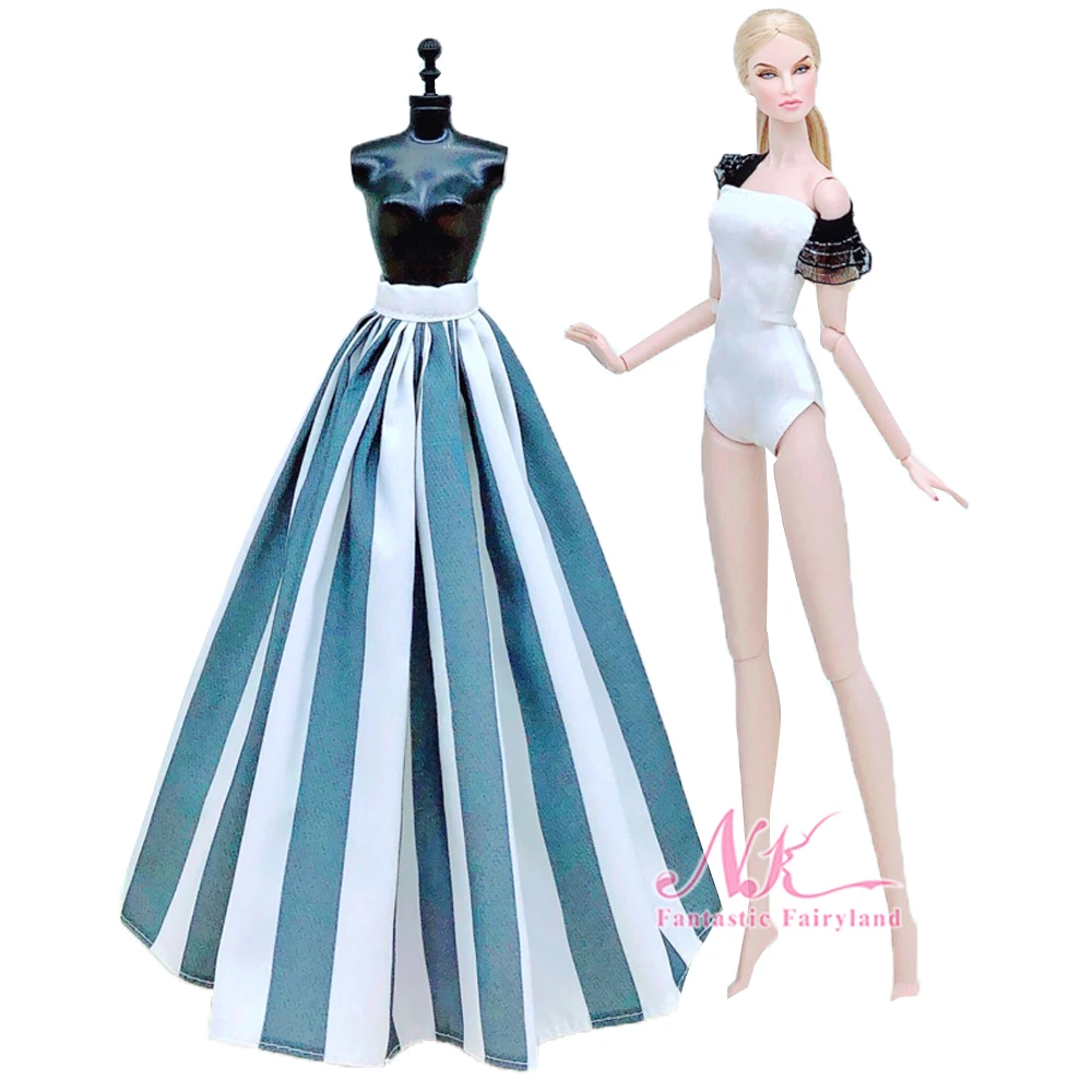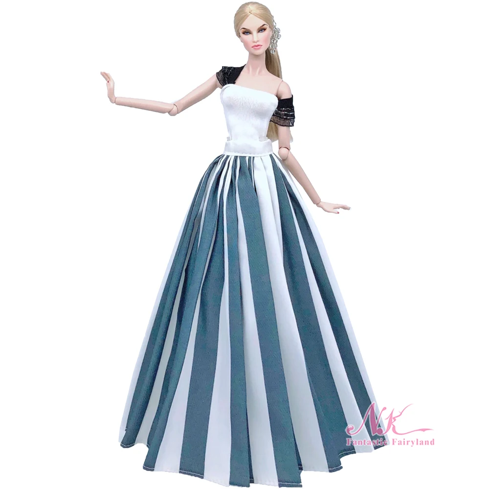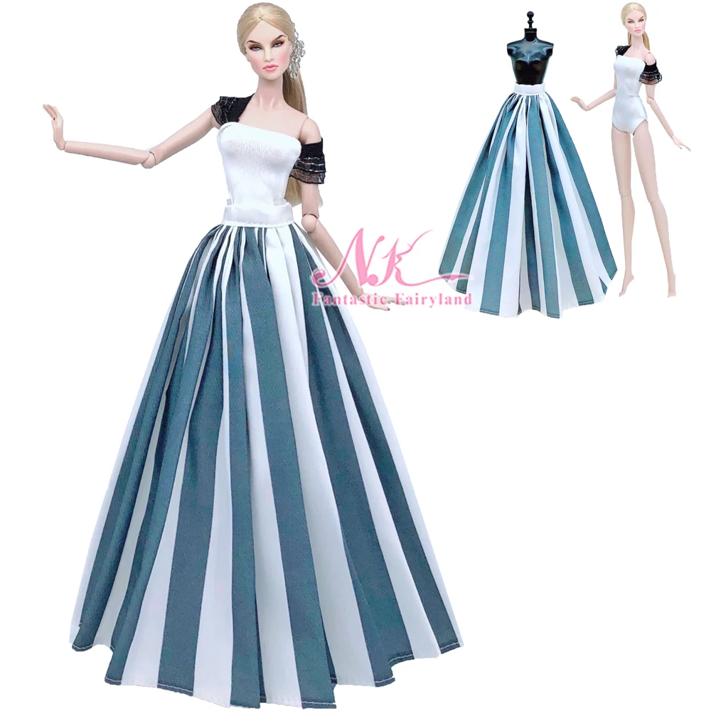 Кукла NK, 1 комплект, благородная, синяя, белая, в Вертикальную Полоску, длинная юбка, модное вечернее платье для Барби, аксессуары для кукол, игрушки для девочек 8X