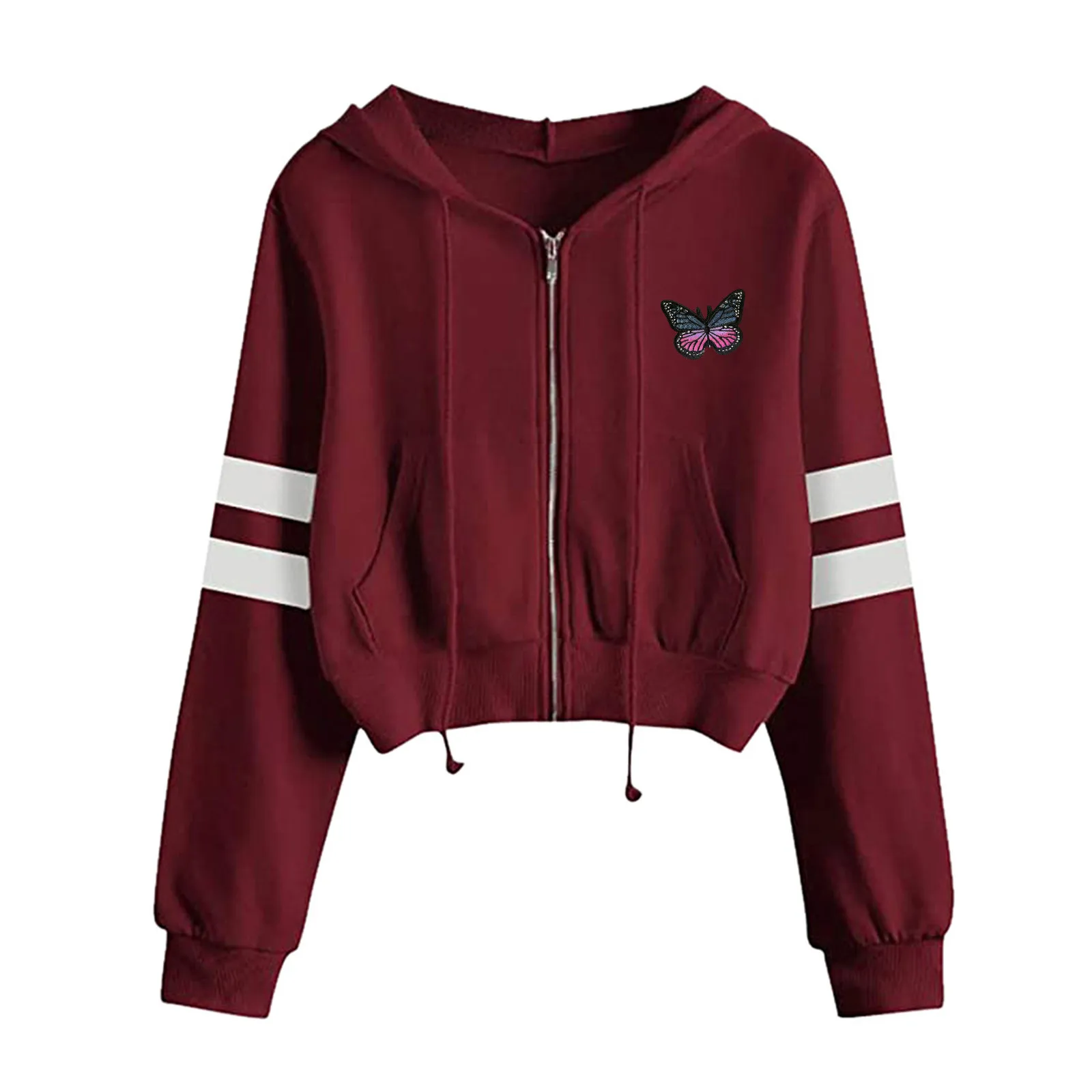 Укороченные толстовки на молнии, женская одежда в стиле Харадзюку, милые укороченные топы с принтом бабочки, толстовка, спортивный костюм с кулиской, корейские куртки Moletom