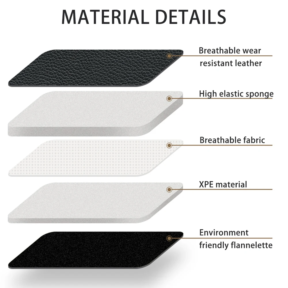 ▶Наш продукт имеет лучшее качество, мы используем высококачественный кожаный материал, губку памяти, нетканый материал, XPE, нескользящее дно, пять видов материалов для обработки готовой продукции.