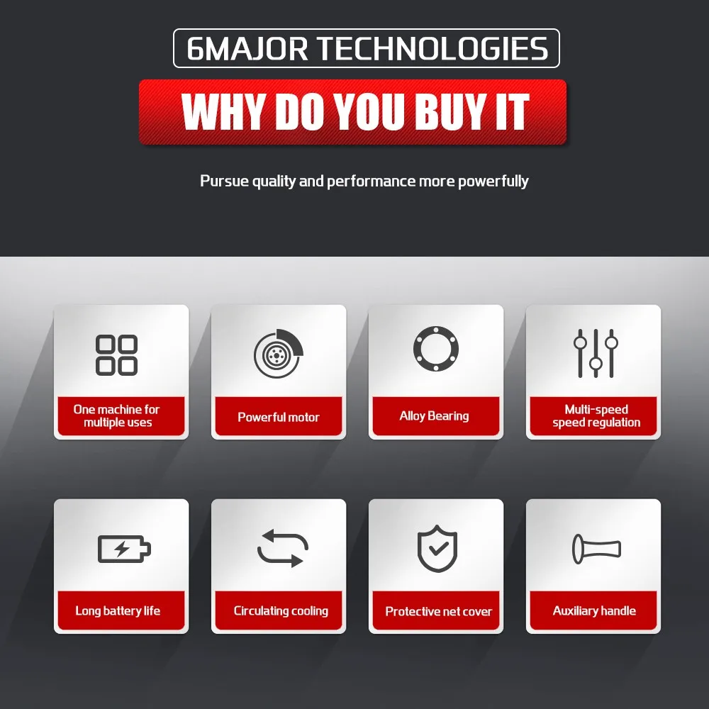 Package Included:1 x Brushless angle grinder1 or 2 x Battery(Optional)1 x Accessories