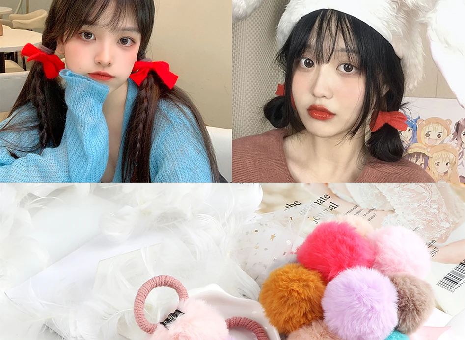 Корейская мода, яркие пушистые шарики, резинки для волос, милые мяг...