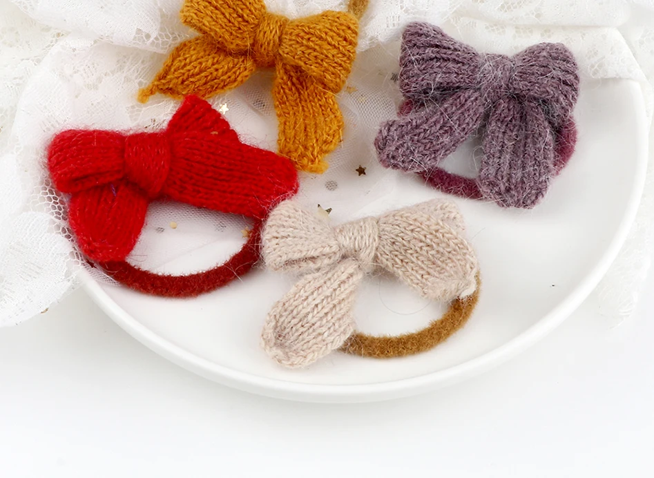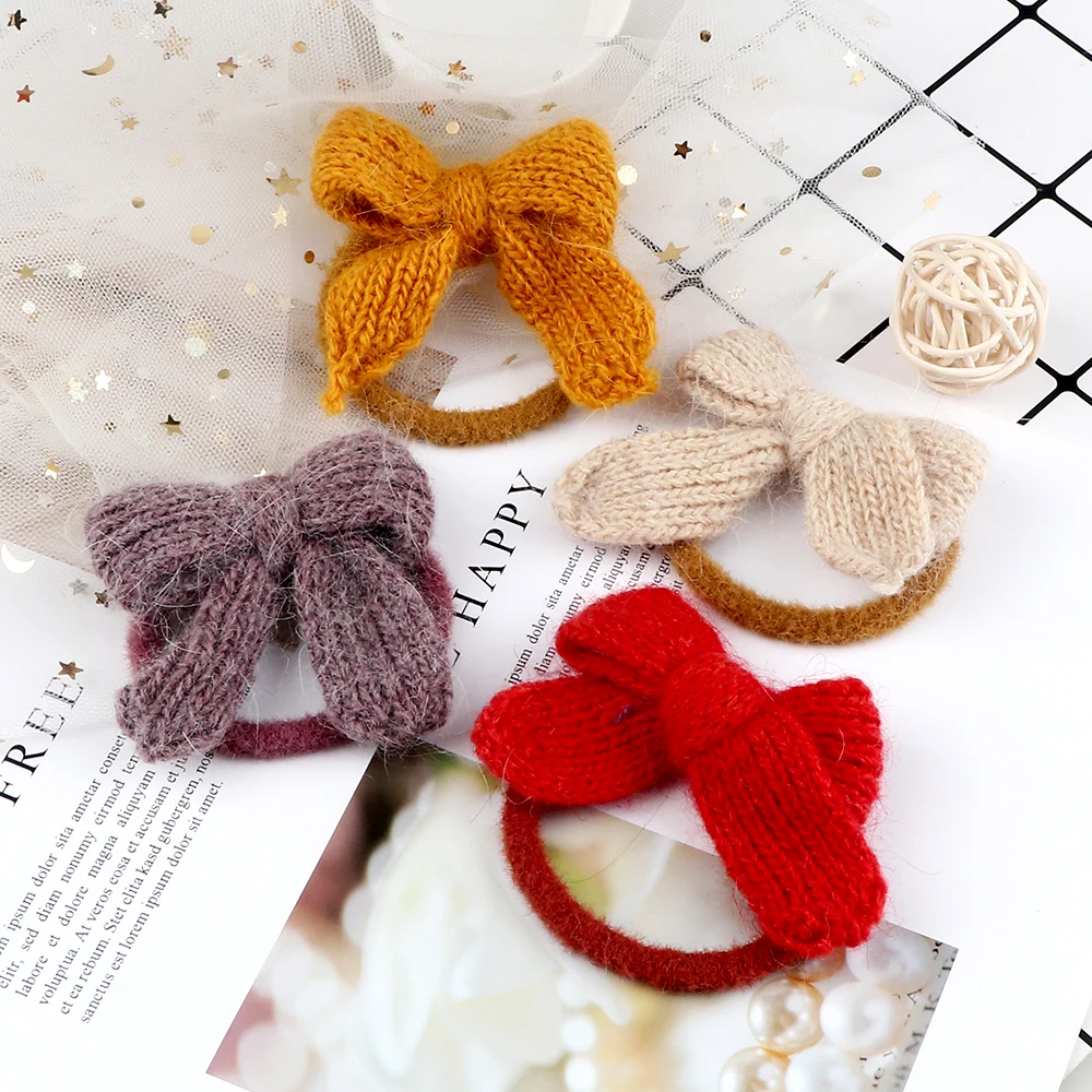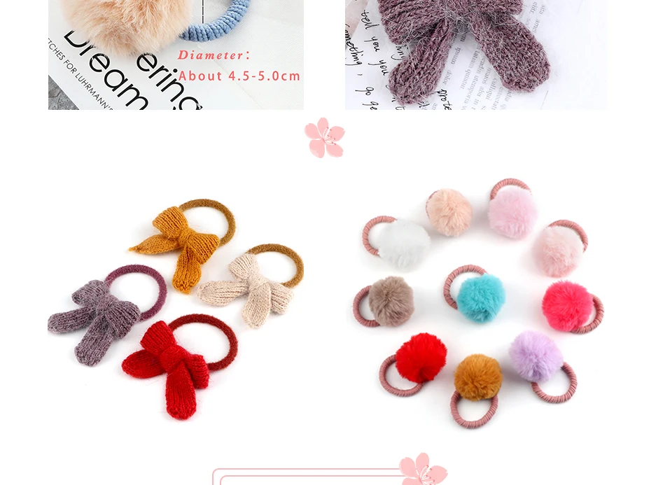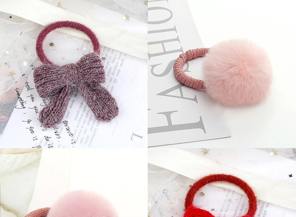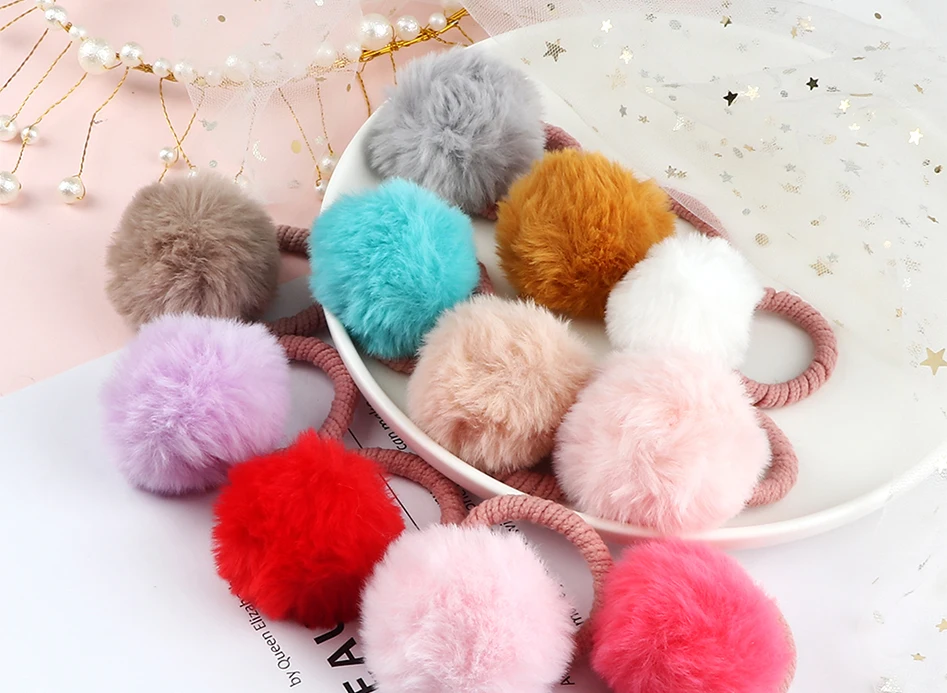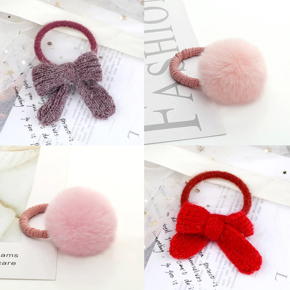 Корейские красочные шарики для волос аксессуары, ленты для волос, детские мягкие резинки для волос с помпонами, Пушистые вязаные резинки для волос с бантом для девочек, головные уборы