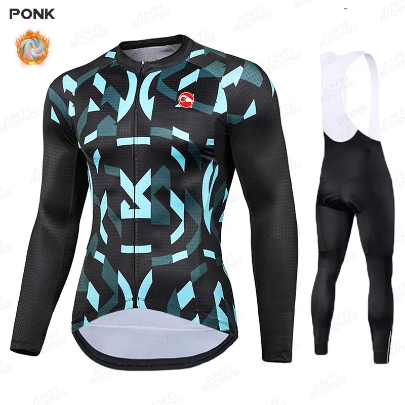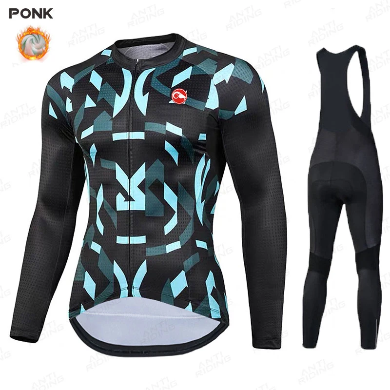 Зимние флисовые комплекты для велоспорта с защитой от езды Ropa Ciclismo мужской велосипедный Топ трикотажная одежда для велоспорта на открытом воздухе с длинным рукавом костюмы