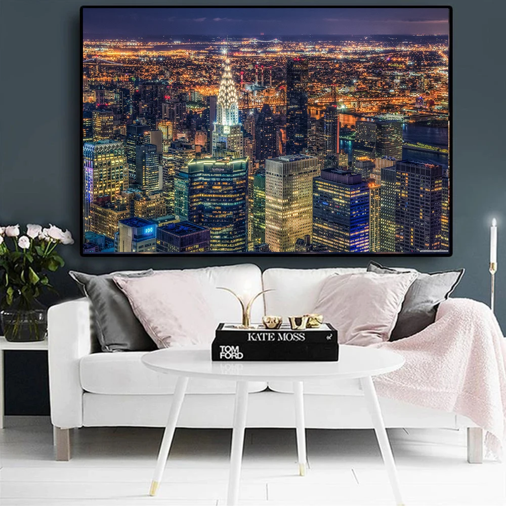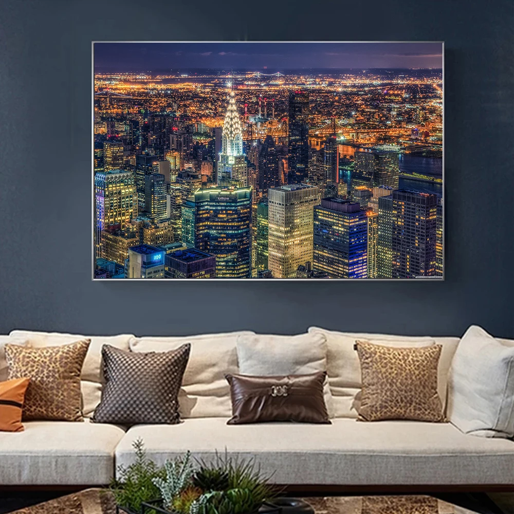 Плакаты с изображением американского пейзажа Нью-Йорка, ночное освещение Чикаго, пейзаж, здание, Картина на холсте, принты, Настенная картина, домашний декор