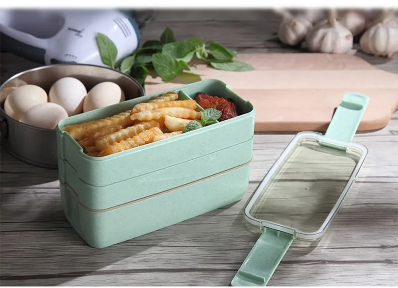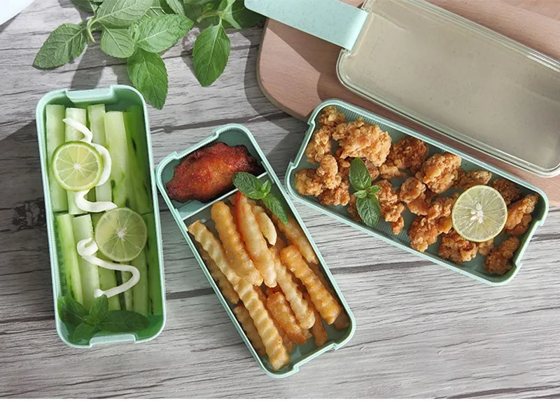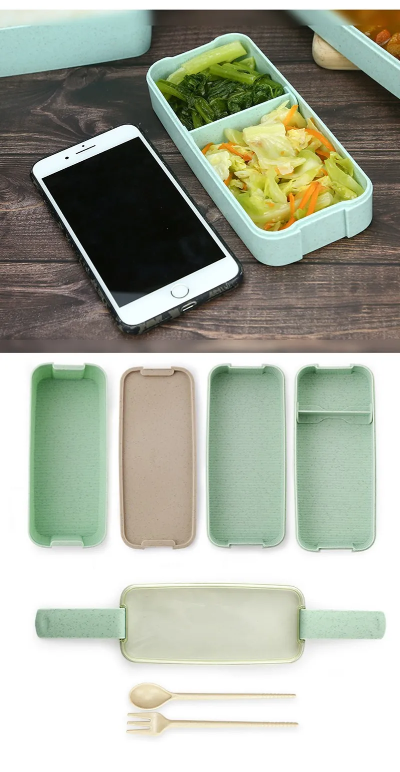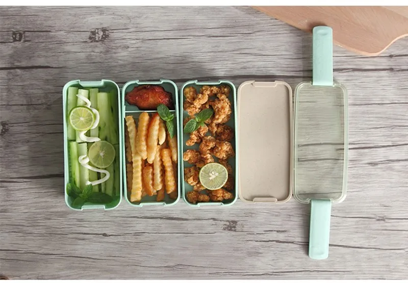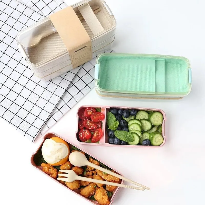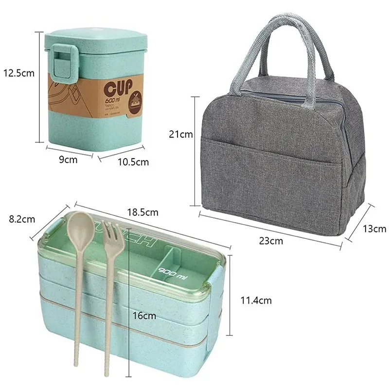 Трехуровневый Ланч-бокс из пшеничной соломы с сумкой, японский Ланч-бокс для микроволновой печи с ложкой-вилкой, пищевой контейнер для студентов, офисных работников