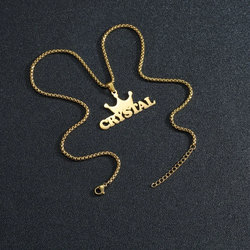 Название:Персонализированное ожерелье с именной табличкой из нержавеющей стали, большая корона, Очаровательная Подгонянная подвеска для мужчин и женщин, подарок, новый стиль, вечерние ювелирные изделияМатериал: нержавеющая стальОсновной цвет: золотой цвет/стальной цвет/розовое золото золотой цветСлучаи: Годовщина, помолвка, подарок, вечерние, свадьба, день рождения, школаФункция: друзья/пары/Влюбленные/Мама/девушка/Дети/дочь