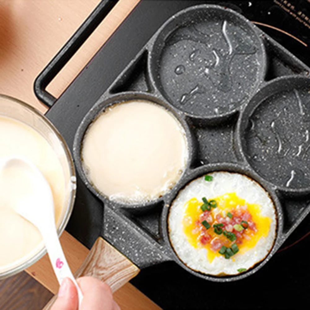 4 отверстия сковорода для омлета жарки горшок утолщенной с антиприг...
