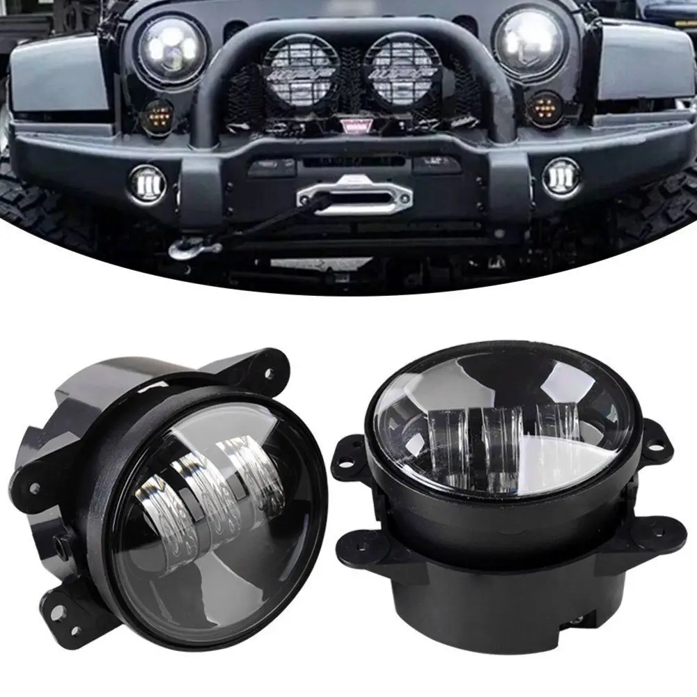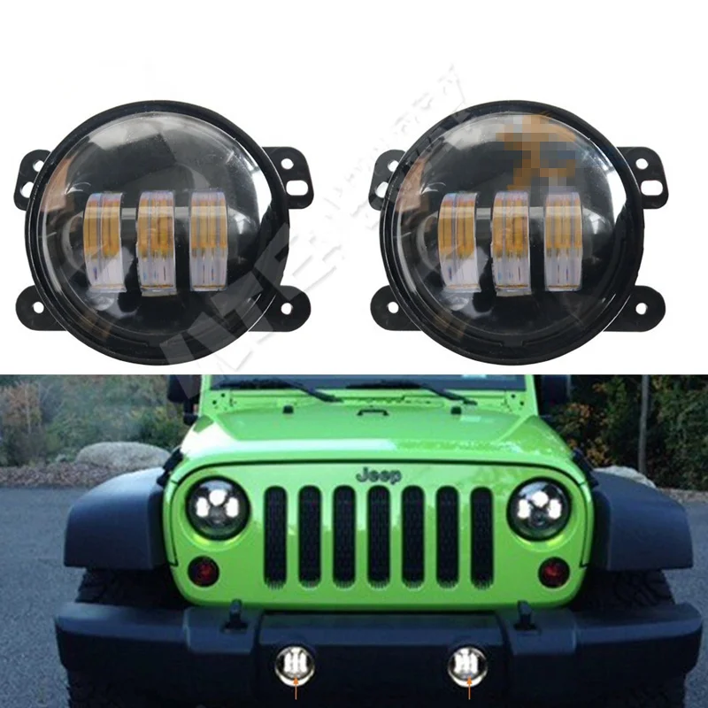 4-дюймовые круглые светодиодные противотуманные фары, белый гало, кольцевые ангельские глазки и белая лампа DRL, угольные глазки для Jeep Wrangler JK LJ TJ
