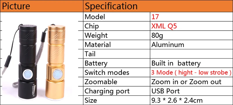 XP-G Q5 Портативный USB удобный мощный светодиодный фонарик перезар...
